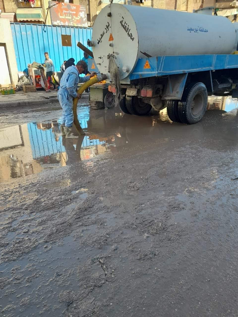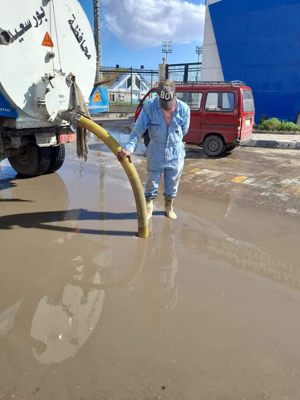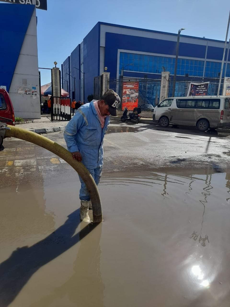 استمرار أعمال كسح تجمعات مياه الأمطار من شوارع بورسعيد