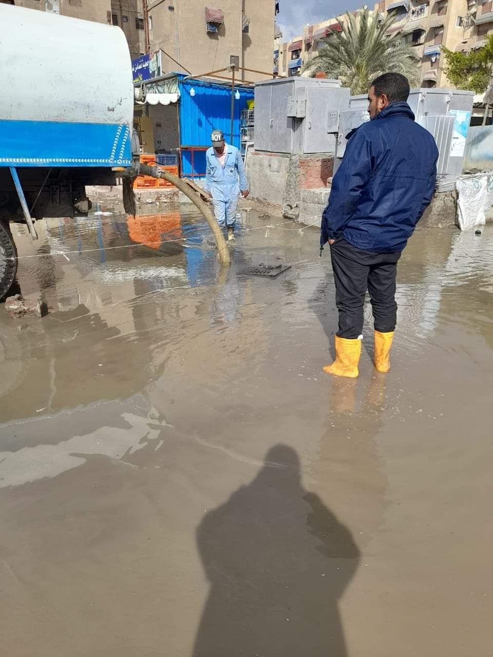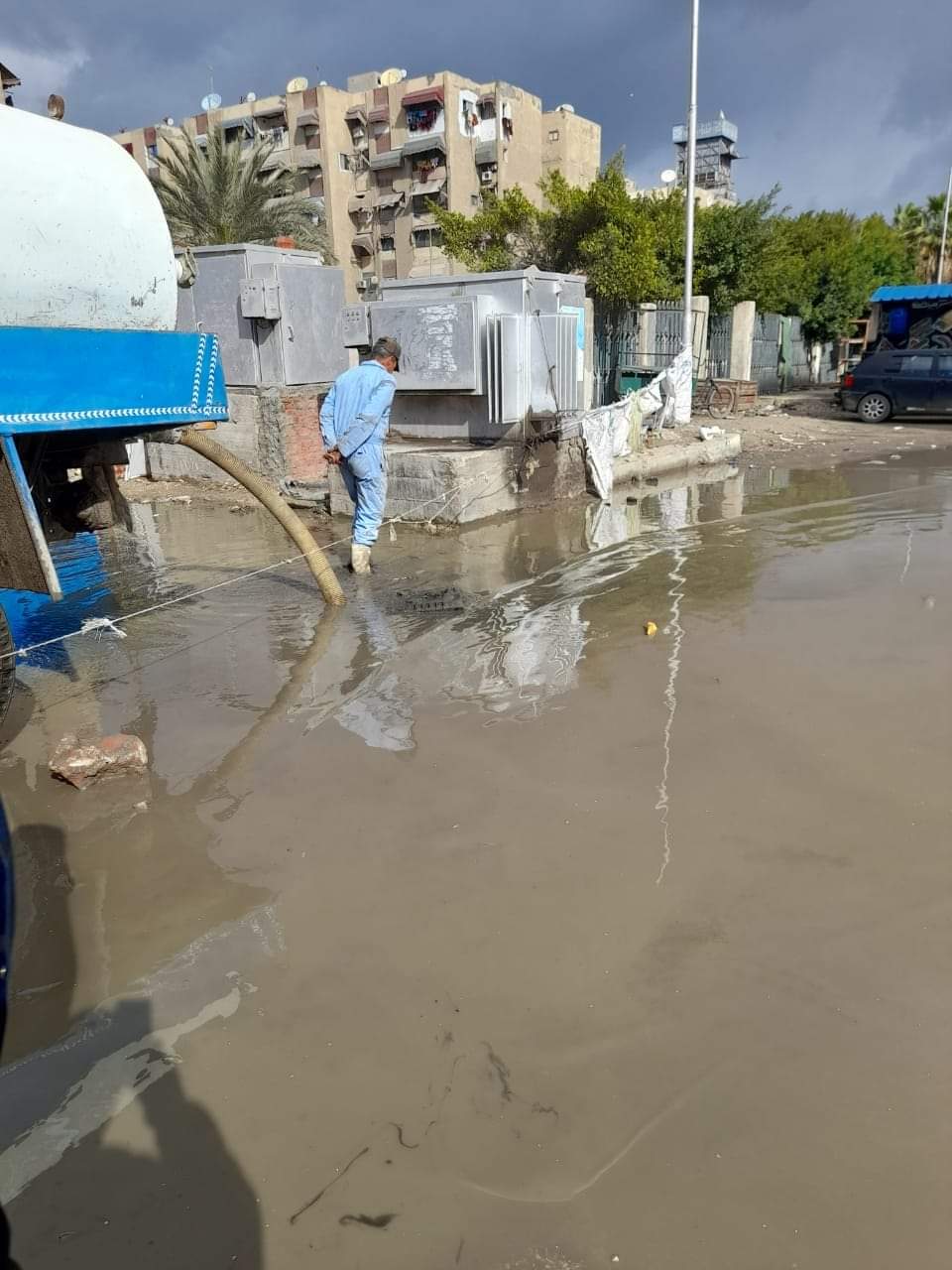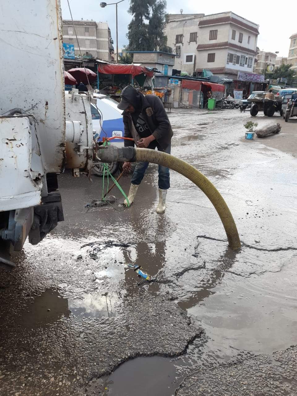 استمرار أعمال كسح تجمعات مياه الأمطار من شوارع بورسعيد