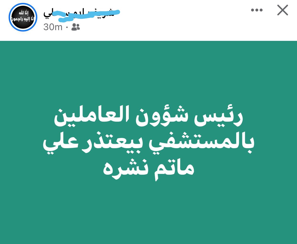 جاء ذلك قبل أن يحذف المنشور ويعتذر عبر حسابه الشخصي قائلا: رئيس شؤون العاملين بالمستشفى يعتذر عما تم نشره.