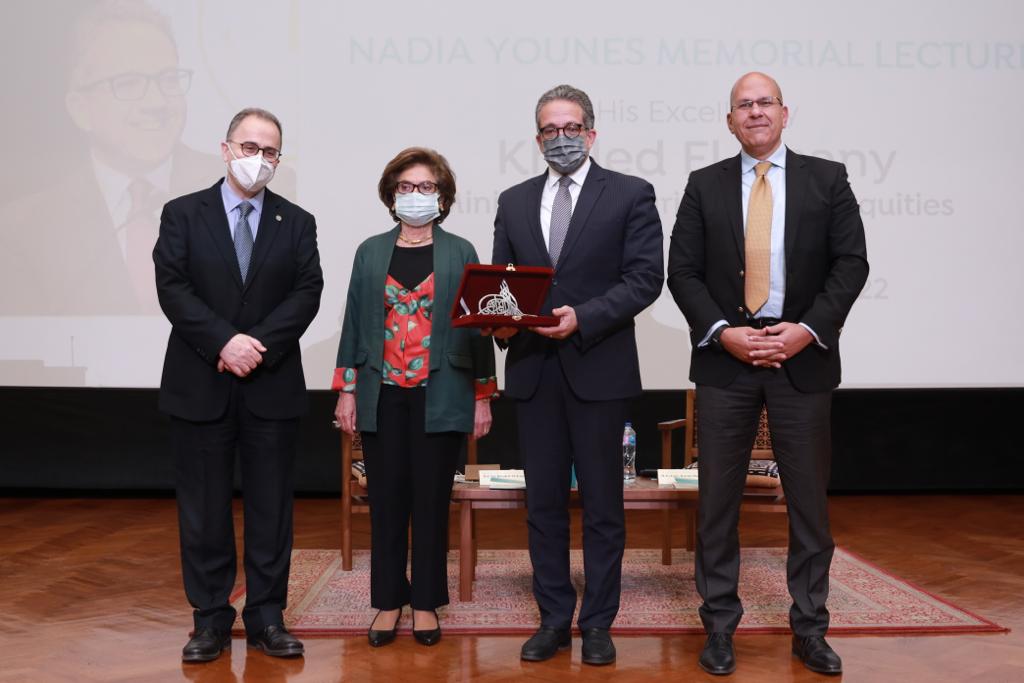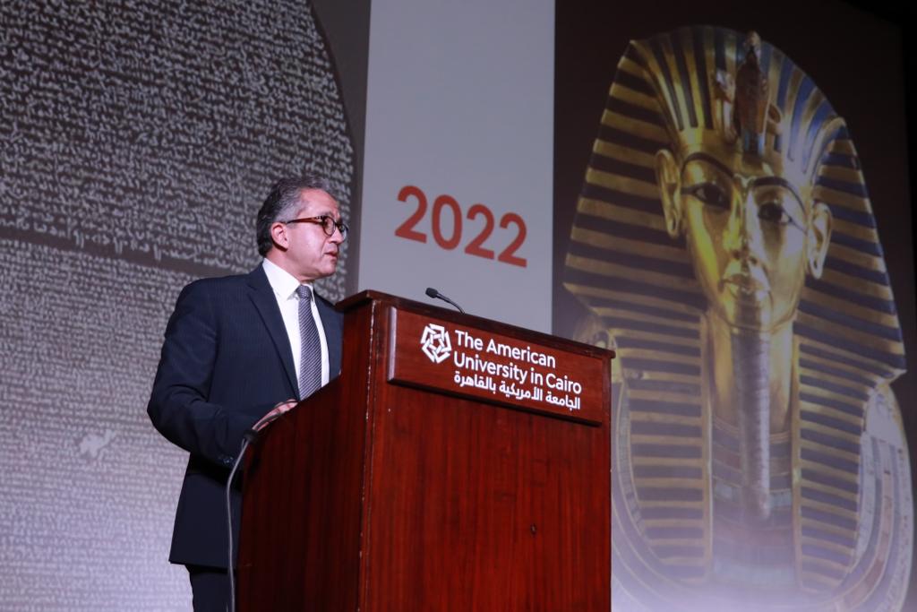 ألقى الدكتور خالد العناني وزير السياحة والآثار، محاضرة، مساء اليوم الثلاثاء، عن جهود الوزارة في مجال الحفائر والاكتشافات ومشروعات ترميم الآثار وتطوير وبناء المتاحف، واسترداد الآثار المهربة، وذلك في قاعة إيوارت بمقر الجامعة الأمريكية بالتحرير، وذلك تلبية للدعوة التي قدمتها له الجامعة، في إطار المحاضرة التذكارية السنوية التي تقيمها لتكريم الدبلوماسية نادية يونس.