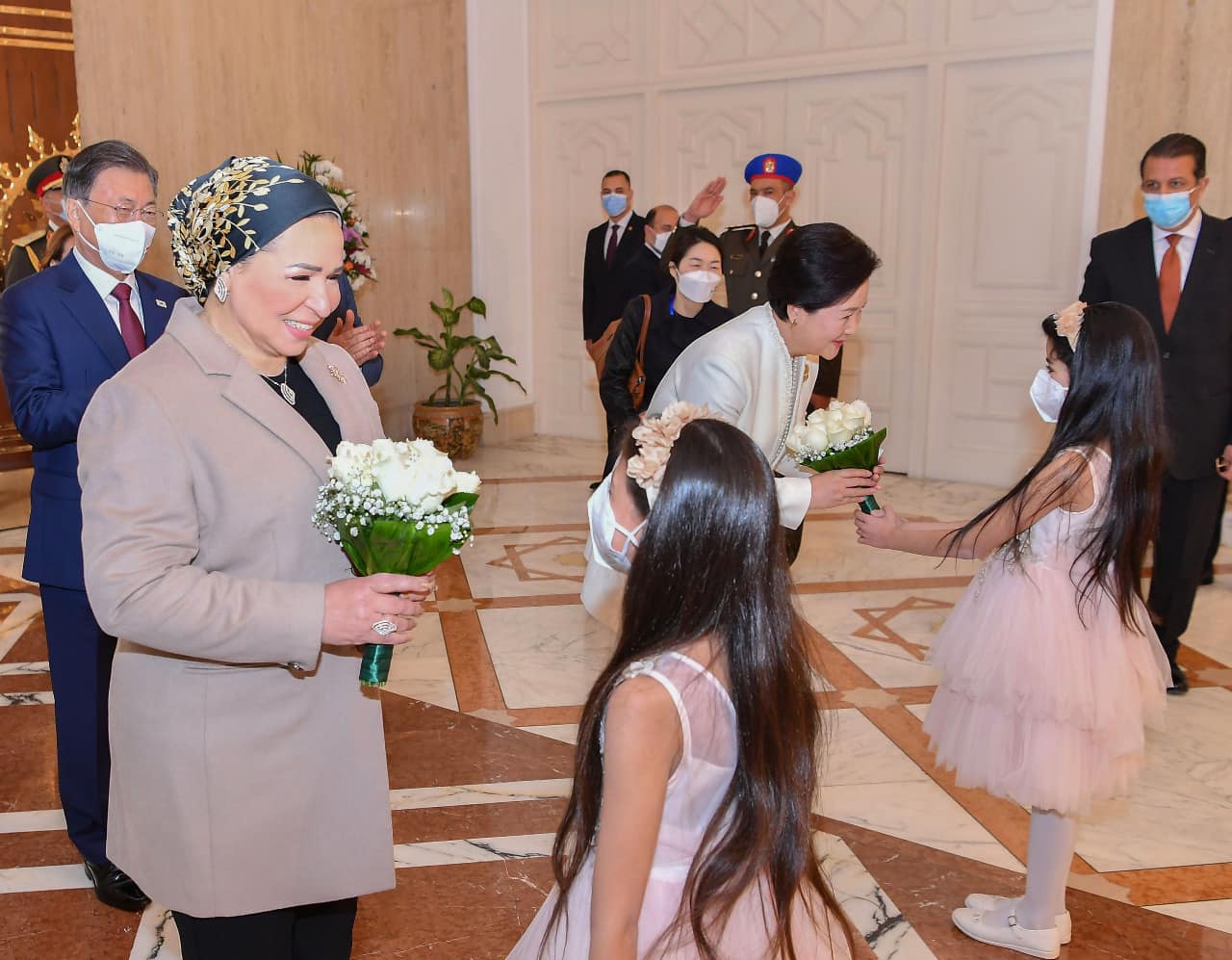 وأضافت حرم الرئيس عبدالفتاح السيسي: أرحب بضيوف مصر الكرام في بلدهم الثاني، فإنني أتوجه بخالص الشكر للسيدة كيم يونج على مشاعرها الطيبة وكلماتها الرقيقة عن مصر، والتي أكدت عمق العلاقات والصداقة المتميزة التي تجمع بين البلدين والشعبين.