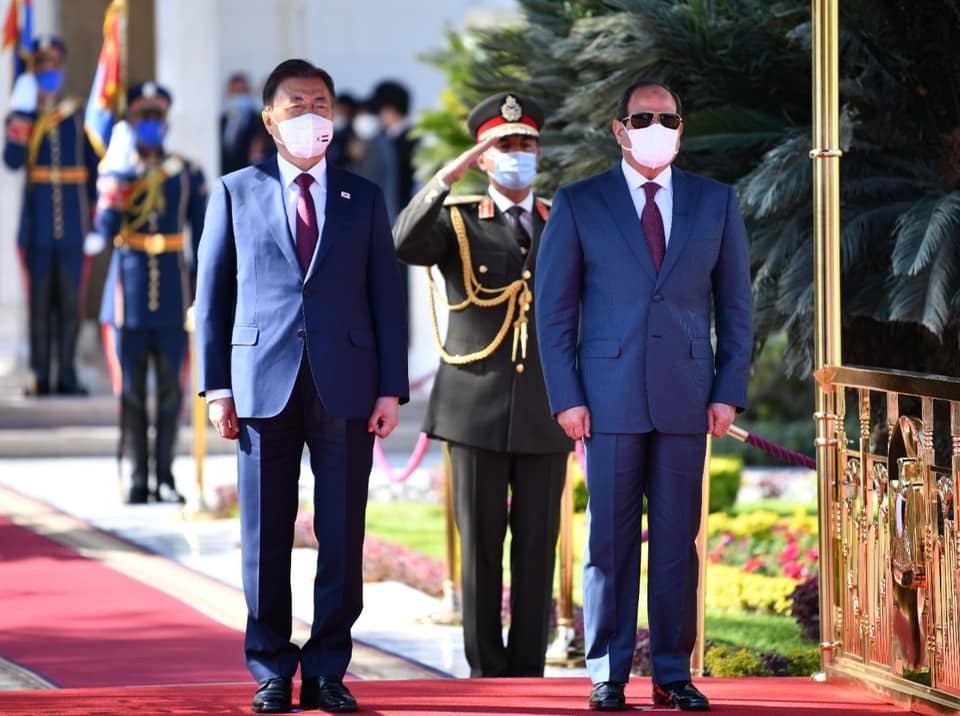 مراسم استقبال السيسي لـ رئيس كوريا الجنوبية