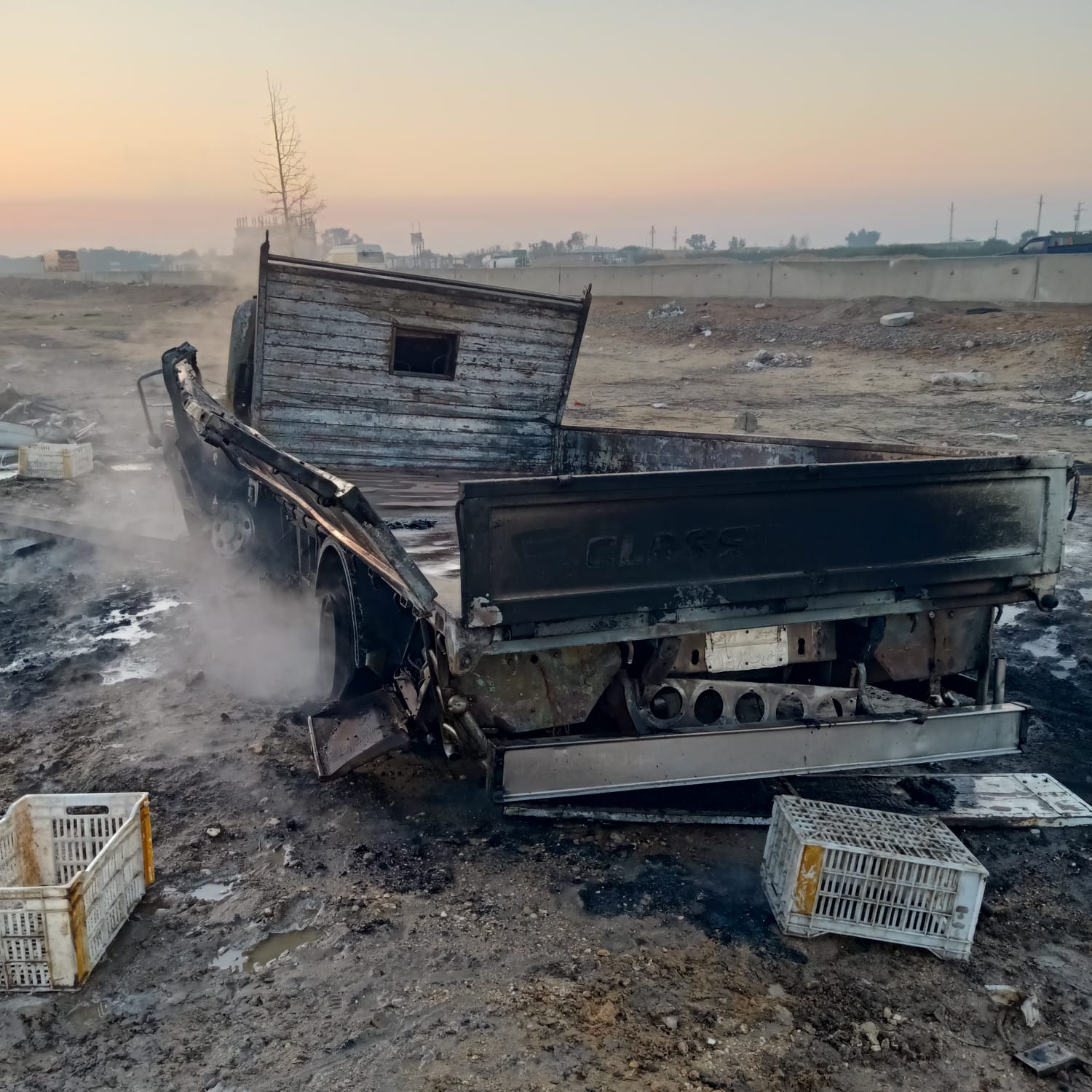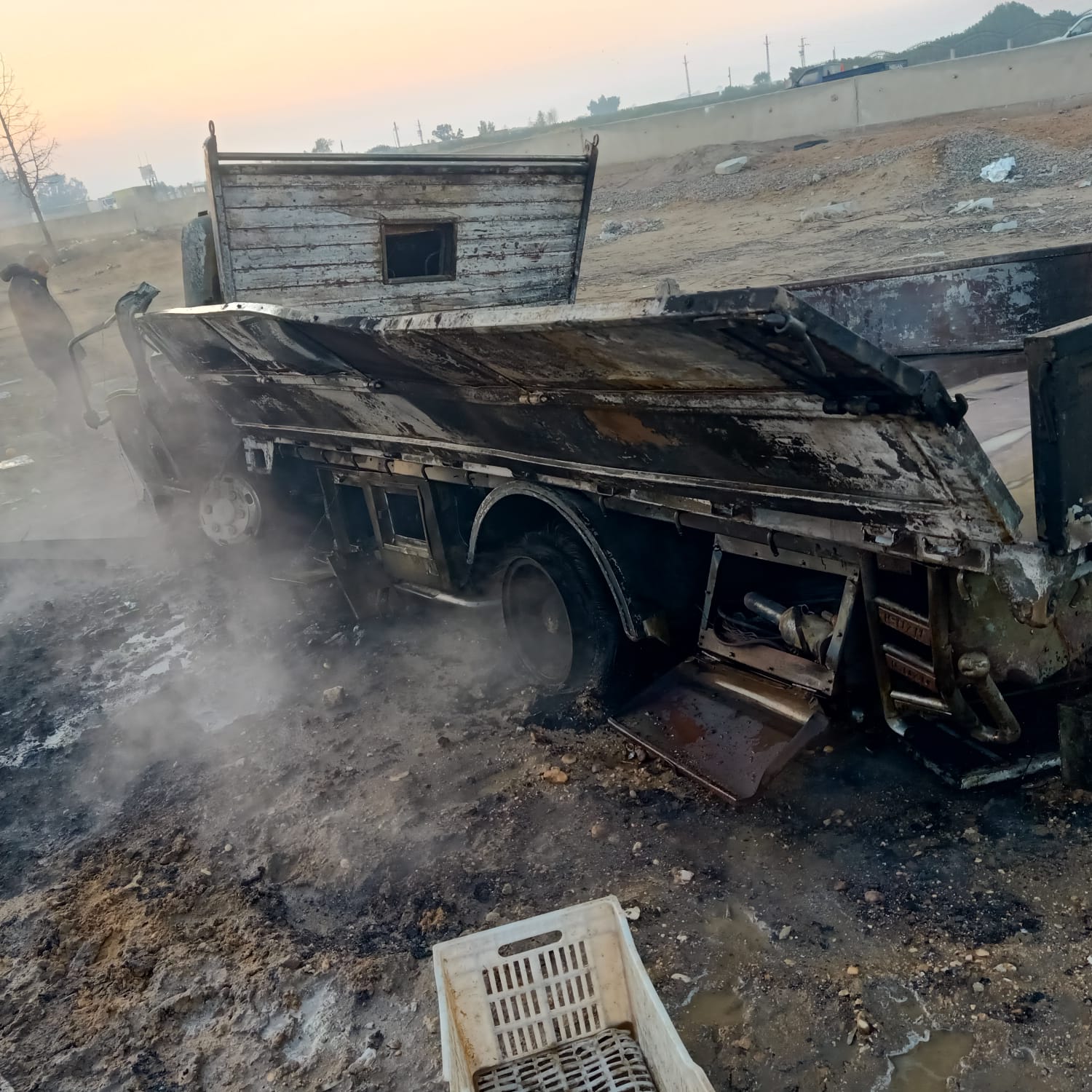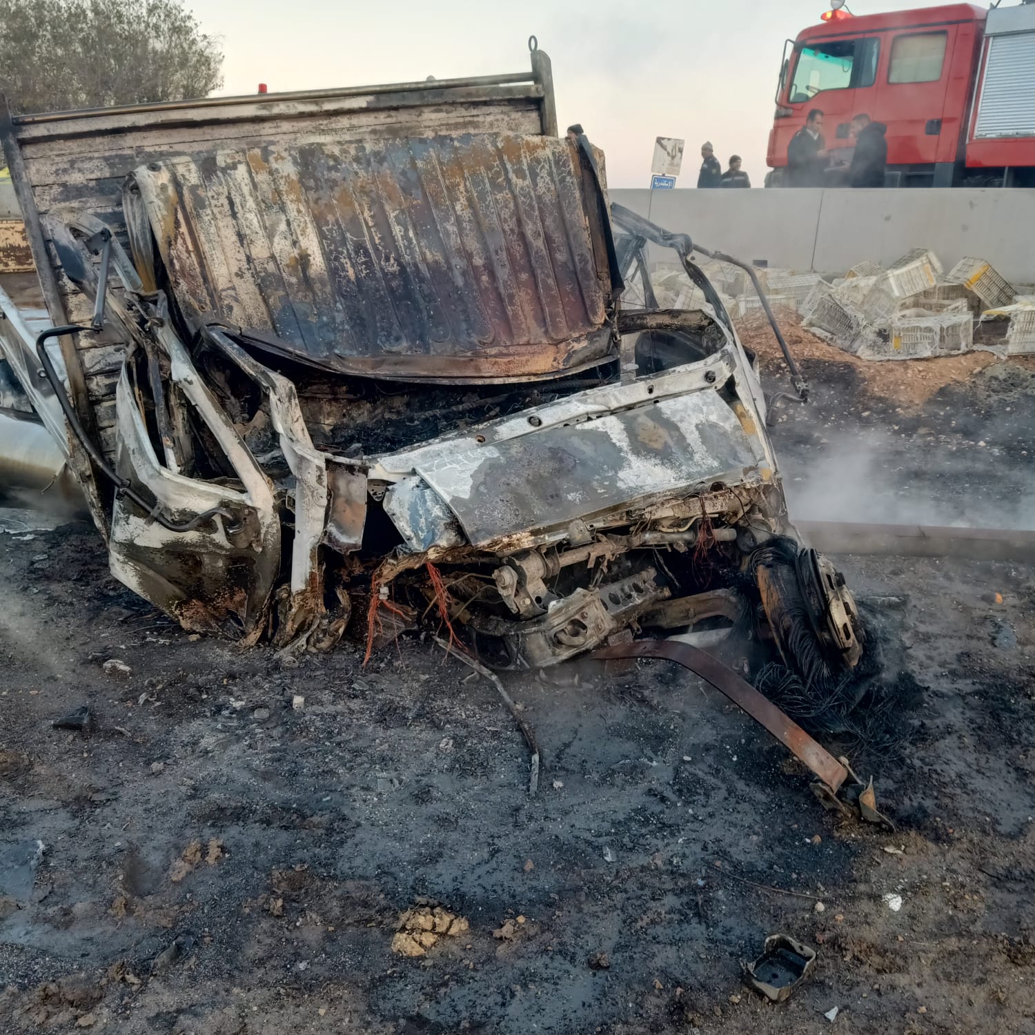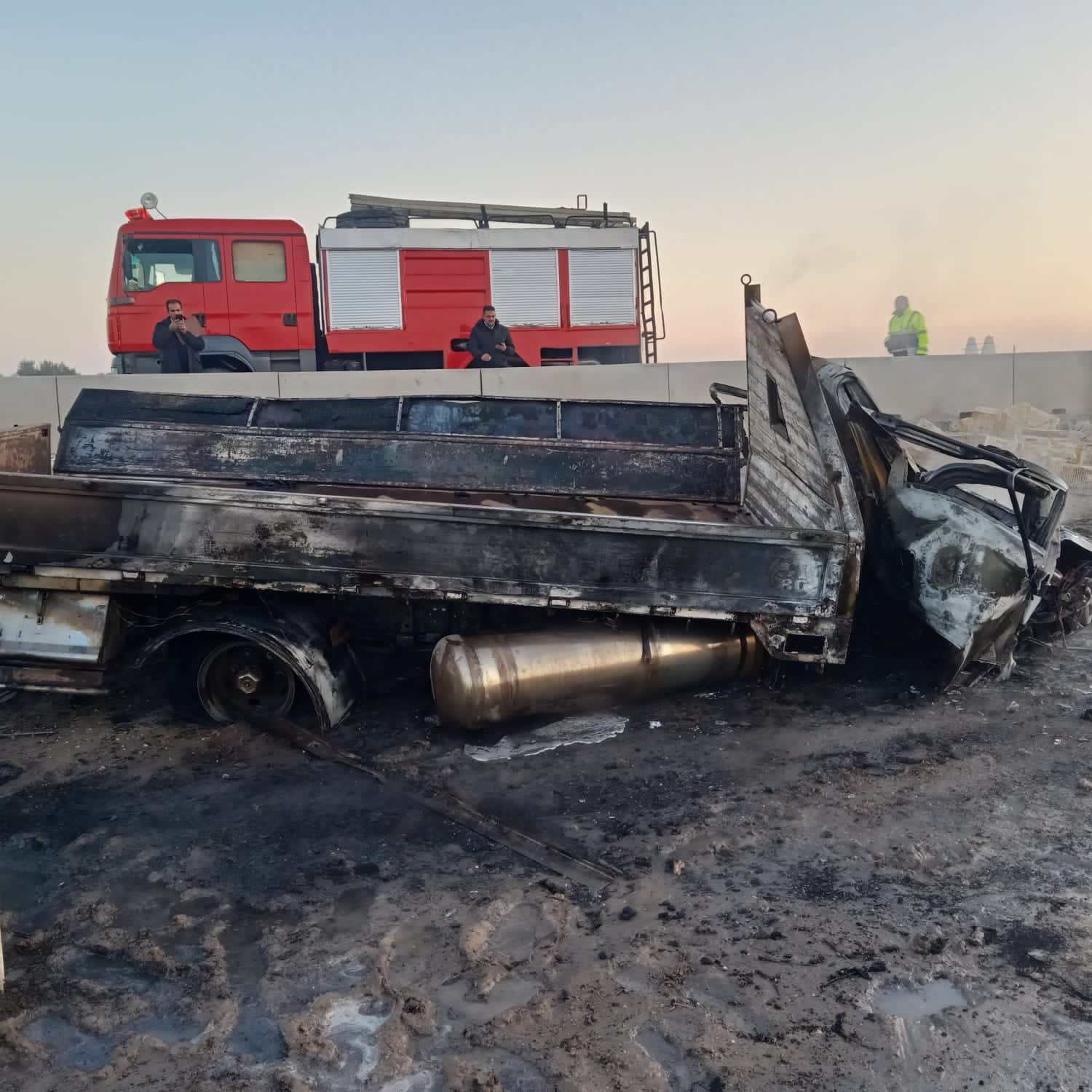 تفحم سيارة نصف نقل وإصابة سائقها بمدينة السادات في المنوفية| صور