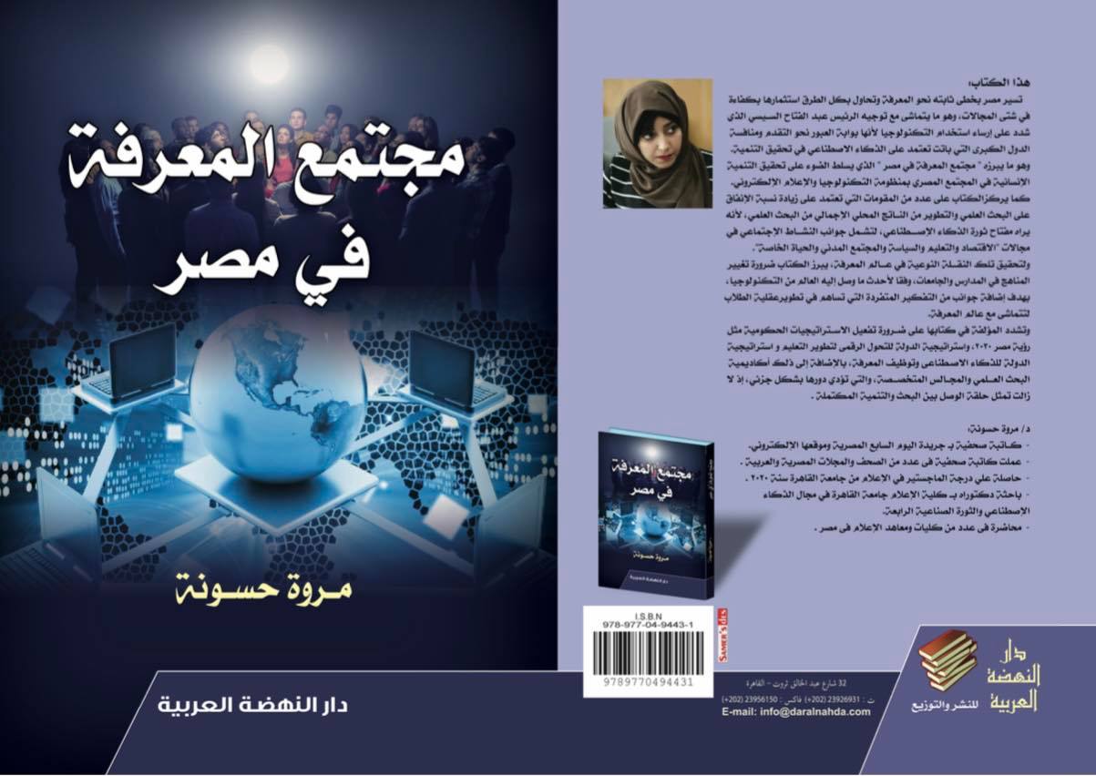 صدر حديثًا كتاب مجتمع المعرفة في مصر للدكتورة مروة حسونة الكاتبة الصحفية عن دار النهضة العربية للنشر والتوزيع، وذلك ضمن فعاليات معرض القاهرة الدولي للكتاب الـ "53" صالة 1 جناح B64.