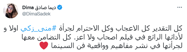 وكتب حساب باسم جيلان: كل التضامن مع منى زكي اللي كانت أروع ما في الفيلم. الله يخلصنا من المجتمع الذكوري المنافق.