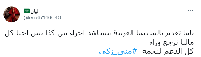 بالإضافة إلى حساب آخر: ياما تقدم بالسينما العربية مشاهد أجرأ من كذا بس احنا كل مالنا نرجع وراء، كل الدعم لنجمة منى زكي.