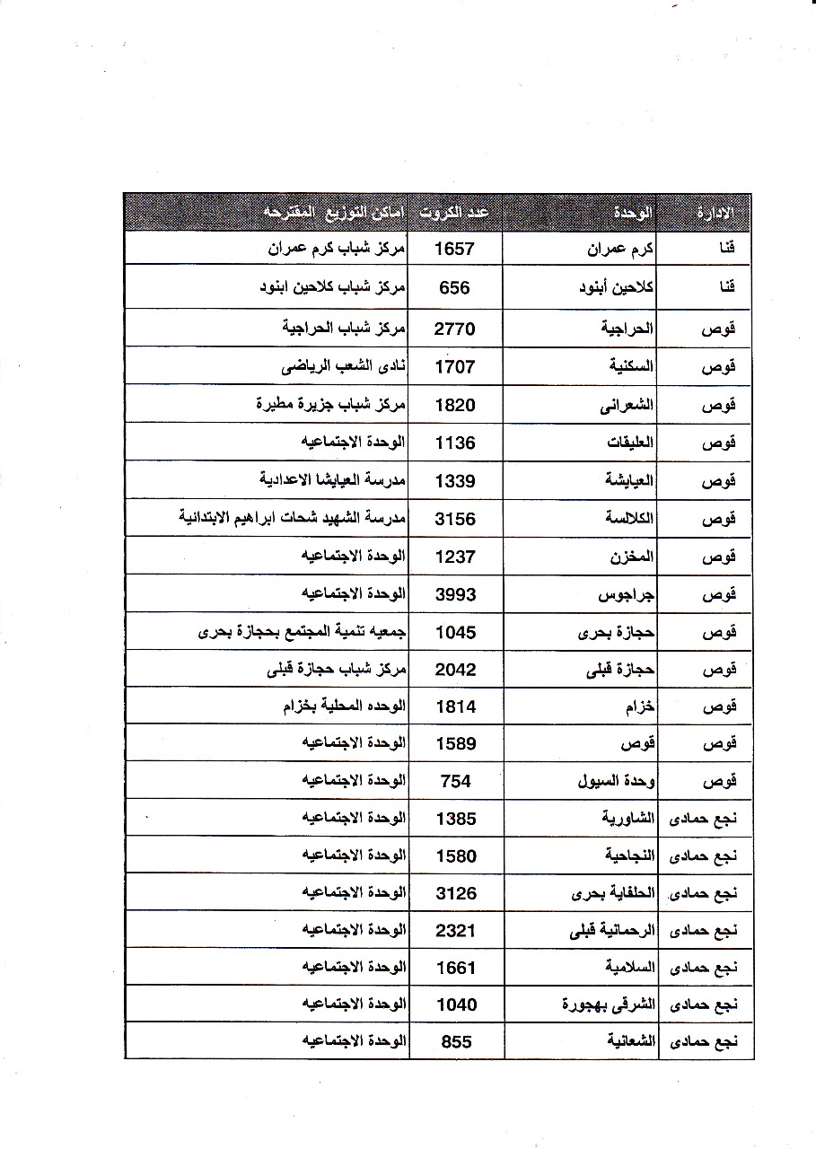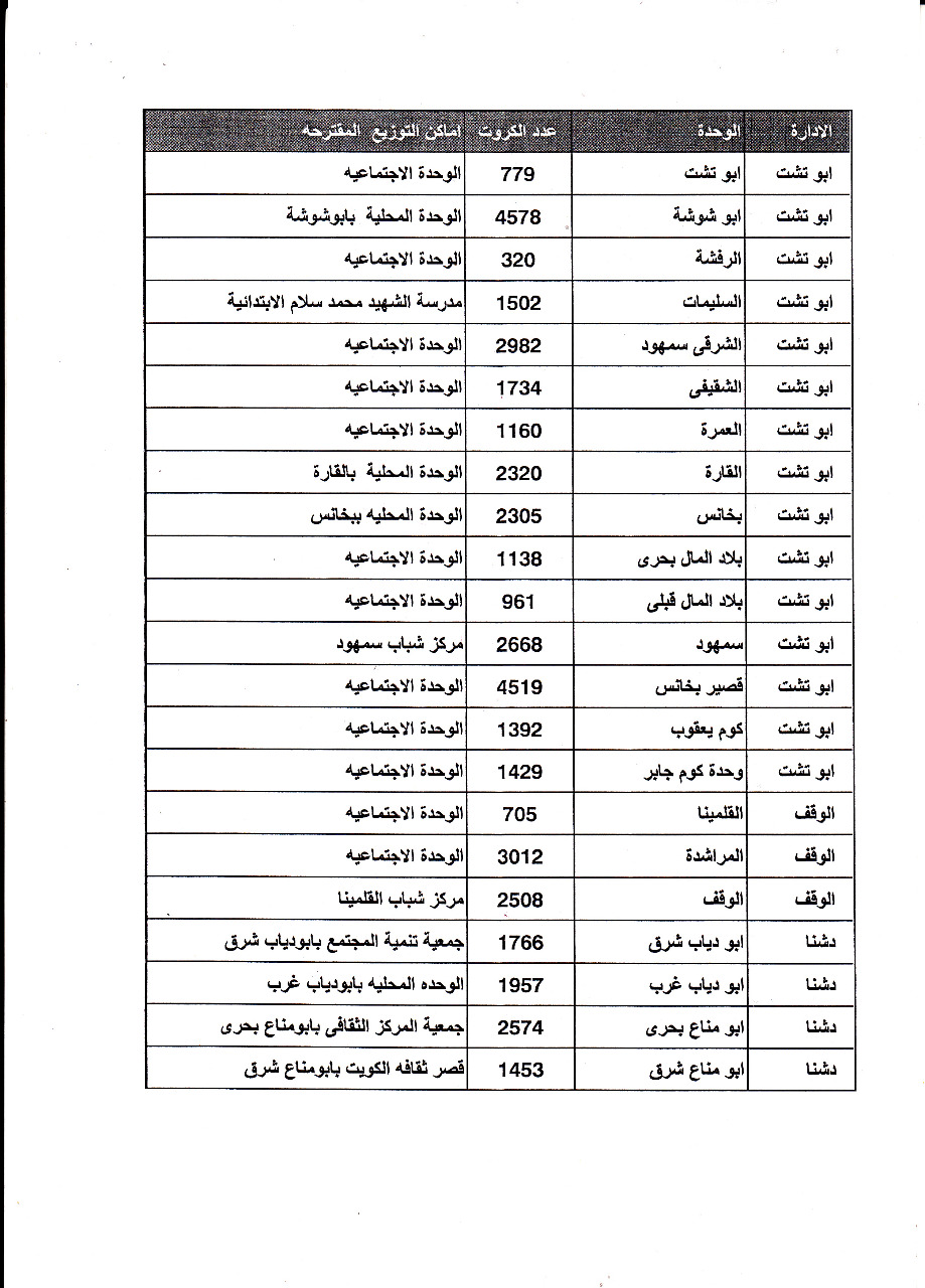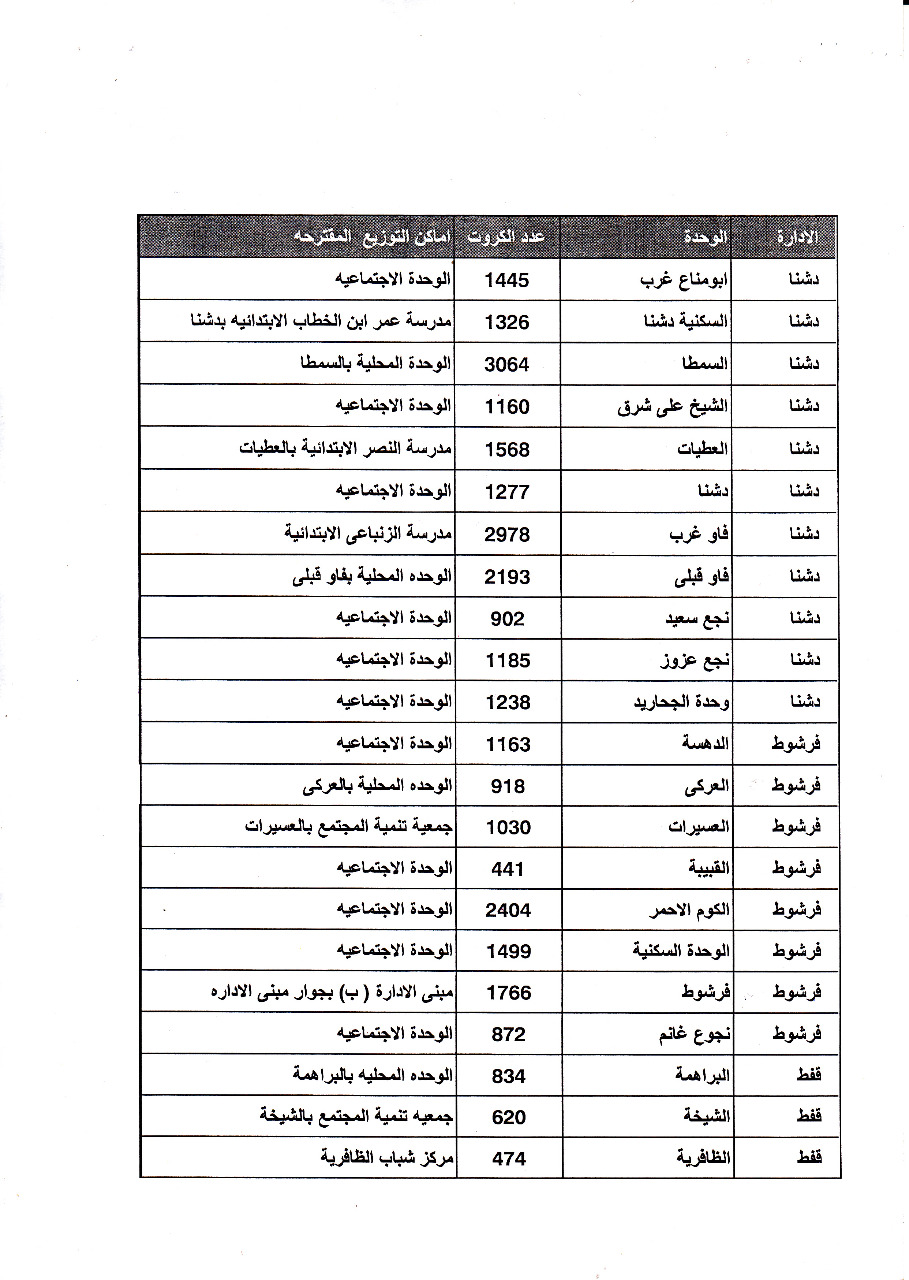 وجاءت أماكن توزيع البطاقات كالتالي: