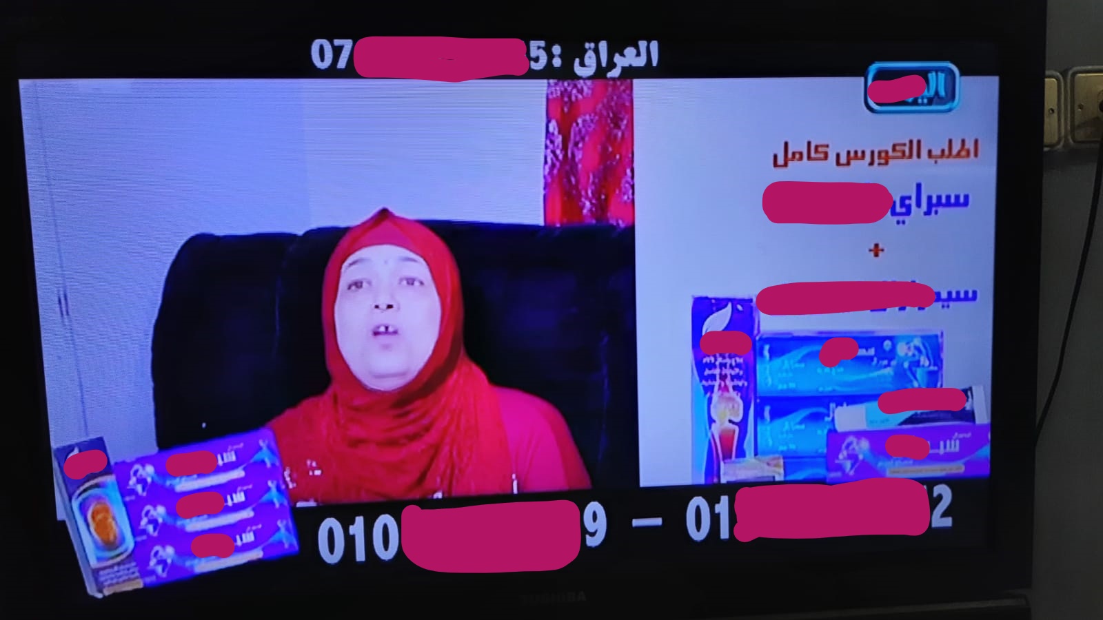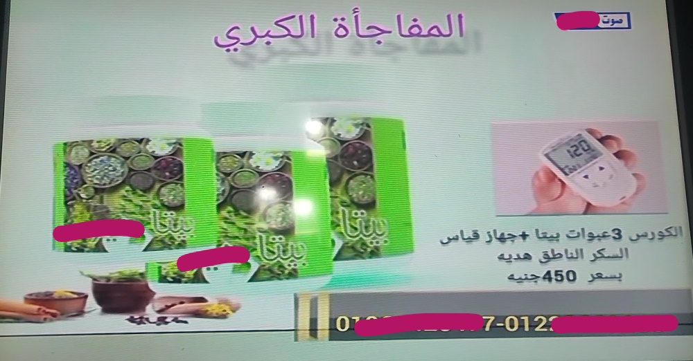 وتكرر الإعلان عن المنتجين السابقين مرتين لكل منهما خلال الساعة الواحدة، بالإضافة إلى إعلان عن وصفة ثالثة، وهي عبارة عن نوع من العسل لعلاج الضعف الجنسي عند الرجال، وعلاج أحد مسببات عدم الإنجاب.