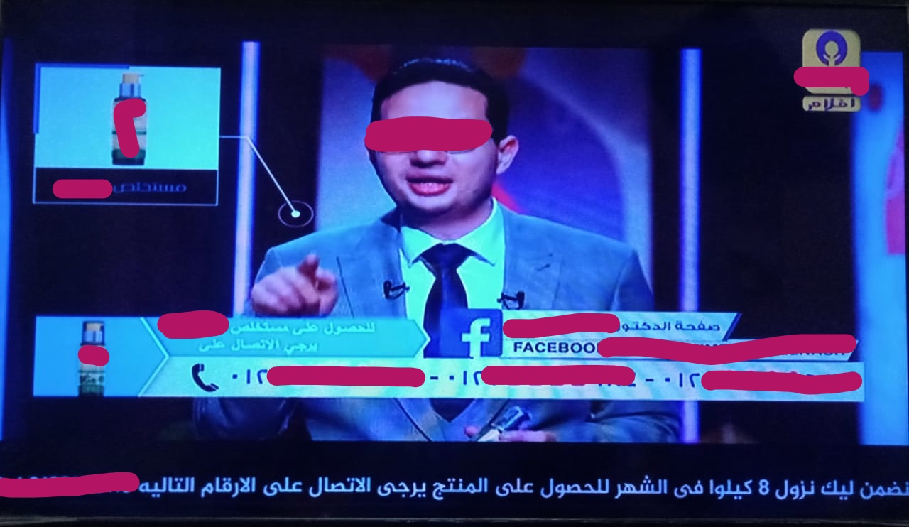 وكشف محمود فؤاد، مدير المركز المصري للحق في الدواء، أن كبرى الفضائيات المصرية تُذيع إعلانات أو فقرات طبية مع متخصصين أو غير متخصصين في فقرات مدفوعة الأجر لضيوف مكررين بشكل يومي، بغرض الترويج لأدوية تخسيس، يدخل في تصنيعها مادة ضارة جدا بالصحة، وسببت حالات وفاة ومضاعفات طبية خطيرة من قبل.