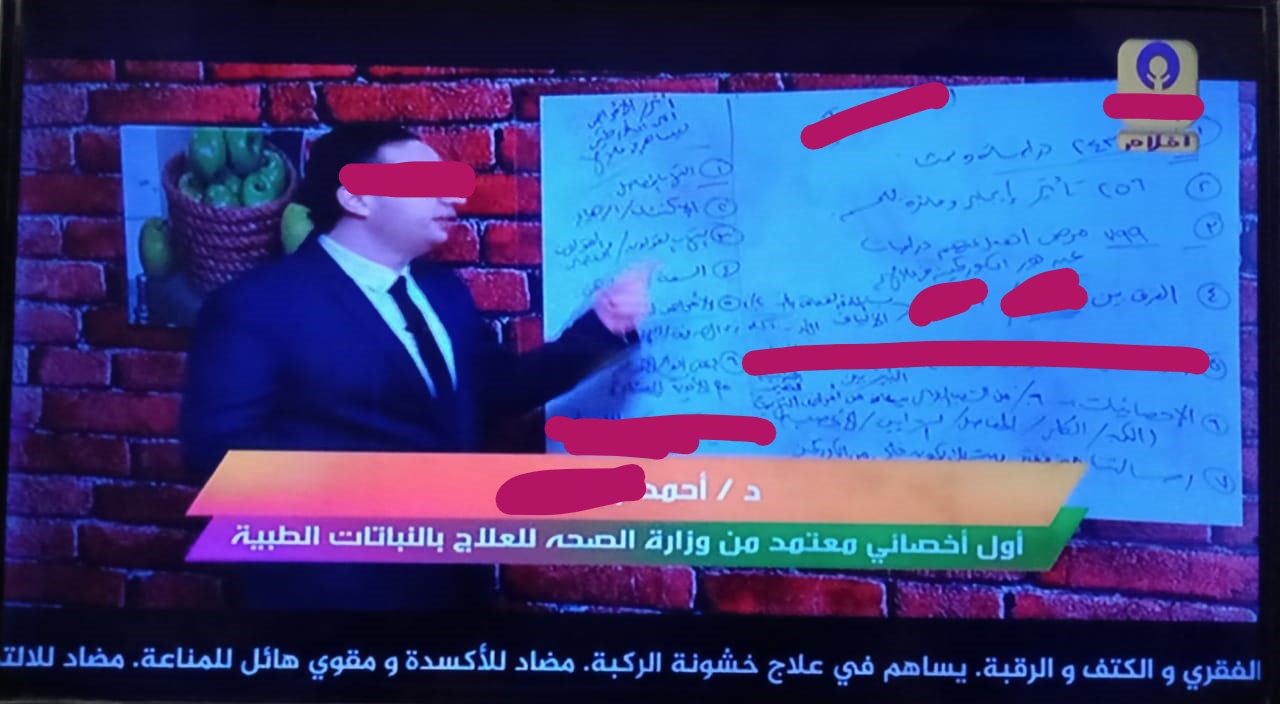 واحتوى الشريط الإعلاني للقناة إحدى وصفات هذا الأخصائي، وادعى قدرتها الفائقة على علاج مجموعة من المشاكل الصحية.