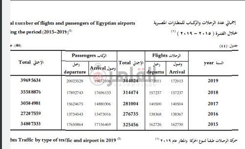 وأشار تقرير الجهاز المركزي للتعبئة العامة والإحصاء، إلى أن إجمالي الحركة الدولية والمحلية لطائرات الركاب، البضائع بالمطارات 127.2 ألف رحلة عام 2019 / 2020 منها 76.7 ألف رحلة بالقطاع العام / الأعمال العام بنسبة 60.3%، 50.5 ألف رحلة بالقطاع الخاص بنسبة 39.7%.