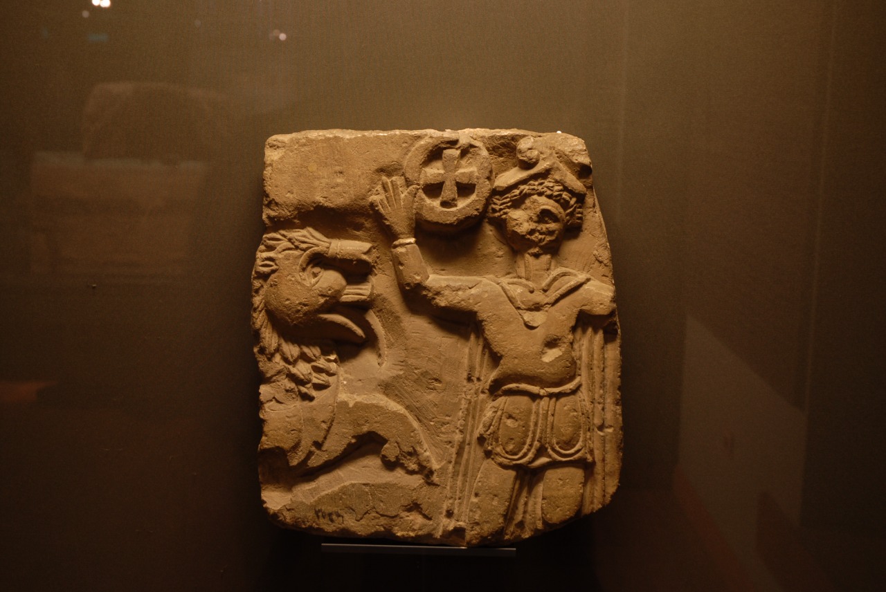 هذا بالإضافة إلى عرض جزء من افريز من العصر الروماني المتأخر يصور فارس يدافع عن نفسه أمام أسد يهجم عليه وبيده صليب يرجح إنه ربما يُصور النبي دانيال، وسيف مقوس من الحديد، له يد من الخشب وغمد من الجلد.