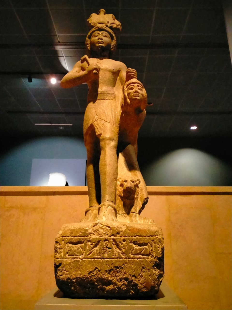 يعرض ثلاثة قطع تضم تمثال للملك رمسيس السادس واقفا قابضا بيده اليسرى على شعر أسير، وحاملا في يده اليمنى بلطه وبين قدمي الأسير يوجد أسد صغير يرمز للقوة الملكية، ونجد الملك رمسيس يقف محميًا بالصقر حورس فوق التاج، وهو يرجع إلى عصر الدولة الحديثة.