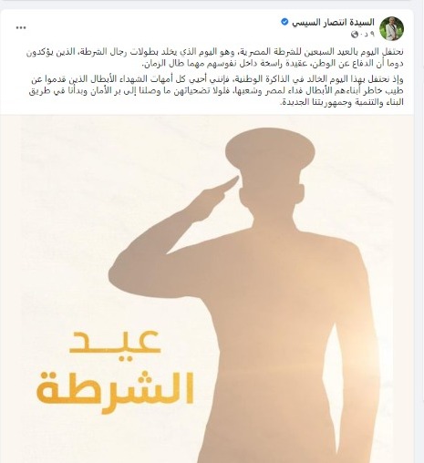 انتصار السيسي في عيد الشرطة: أحيي كل أمهات الشهداء الأبطال الذين قدموا أبناءهم فداء لمصر