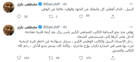 نعي متابعي مواقع التواصل لياسر رزق