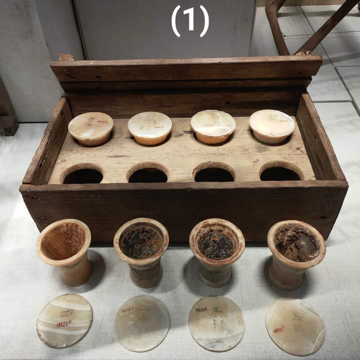 - صندوق الدهان العطري، أعتبر المصريين القدماء أن العطور هي رحيق الآلهة وكانوا يصنعونها من عصارات النباتات العطرة التي يزرعونها أو يستوردونها من عدة دول، حيث كانت العطور تستخدم في الحياه اليومية وفي الطقوس الدينة والجنائزية أيضًا ويحتوي هذا الصندوق علي ثمانية أواني للعطر والتي كتب اسم كل منها علي الغطاء الخارجي للإناء.