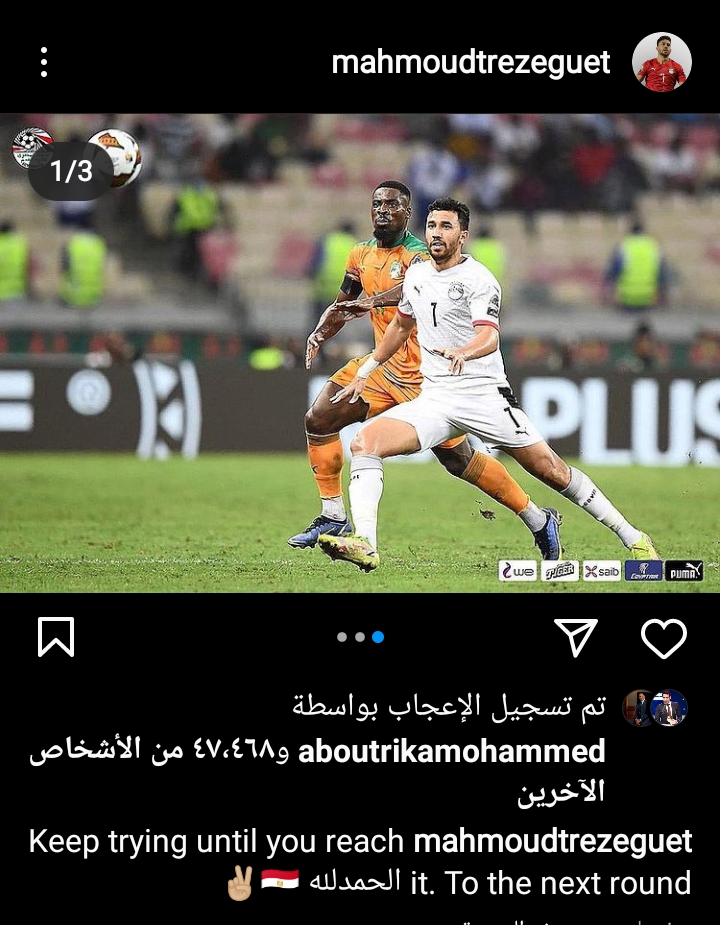 علق لاعبنا الدولي محمود حسن تريزيجيه، لاعب فريق أستون فيلا الإنجليزي ومنتخب مصر، عبر حسابه الرسمي على موقع التواصل الاجتماعي انستجرم، عن سعادته لـ تأهل منتخبنا الوطني إلى ربع نهائي كأس الأمم الإفريقية 2021، عقب الفوز أمام منتخب كوت ديفوار.