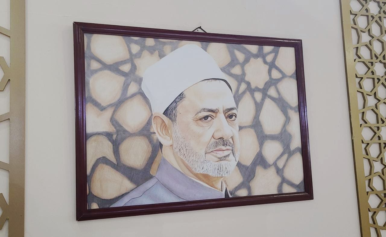 بمجرد أن تصل إلى جَنَاح الأزهر بمعرض القاهرة الدولي للكتاب في القاهرة الجديدة، يجذب انتباهك جمال تصميم جناح الأزهر والصور والرسومات والأعمال الفنية على جدران الجناح، ومن بين هذه الأعمال الفنية تجد لوحة كبيرة لفضيلة الإمام الأكبر الدكتور أحمد الطيب شيخ الأزهر، وأخرى تجسد ملامح حرب أكتوبر المجيدة، أولاهما بالألوان الخشبية والثانية بالألوان المائية.
