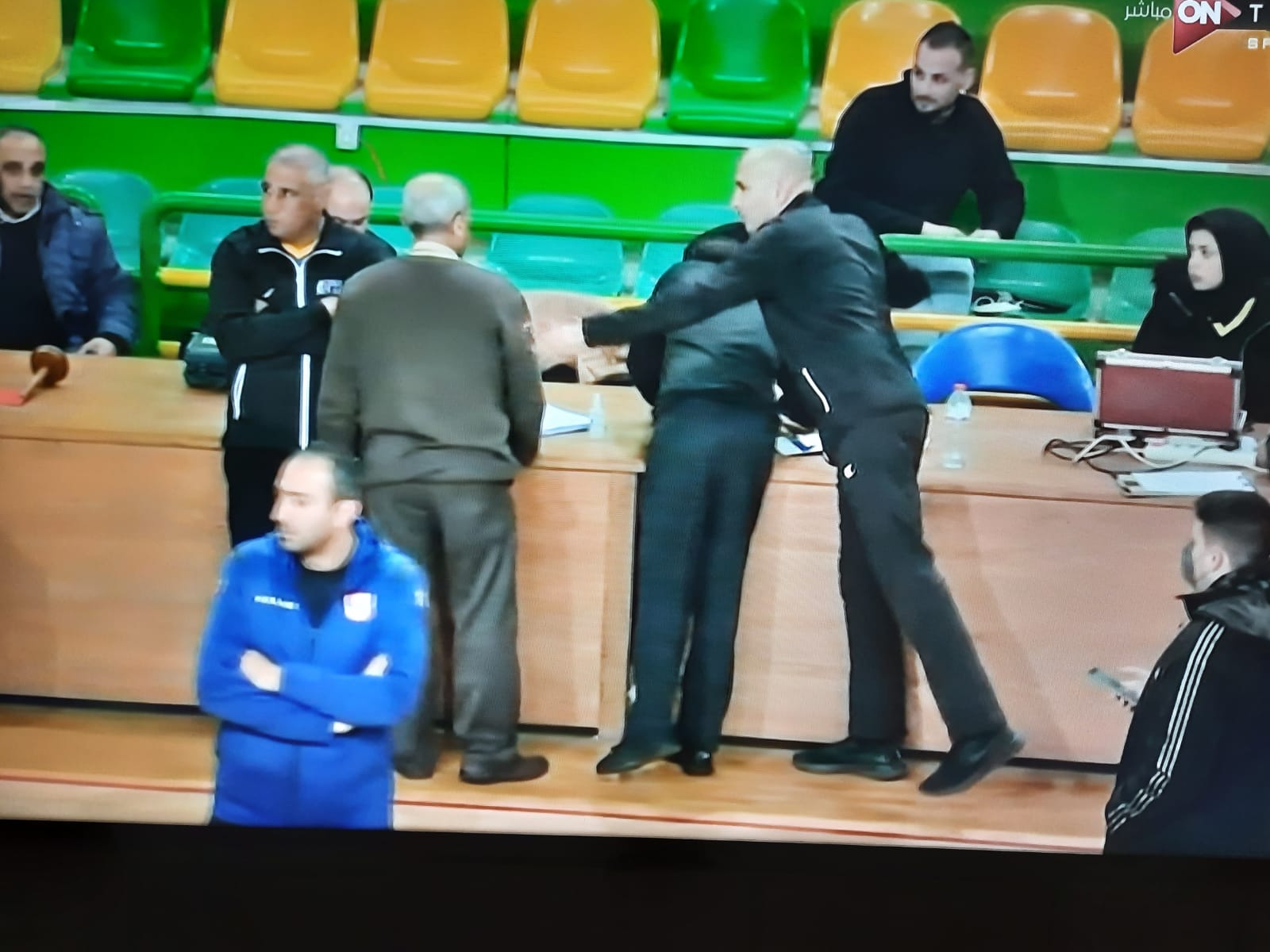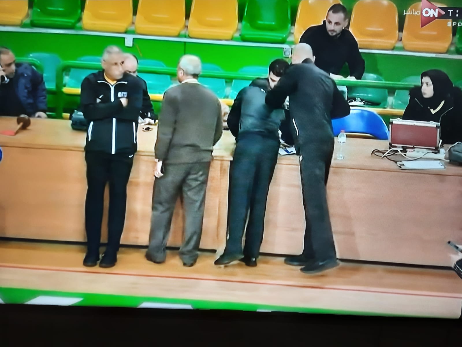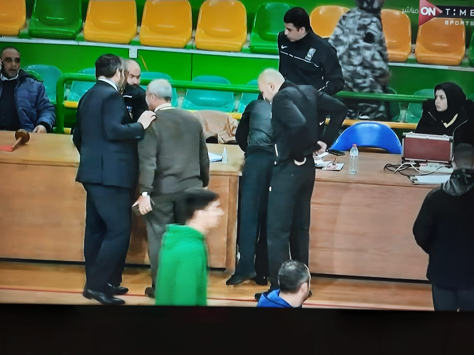 وتحدث أوجستي جولبي المدير الفني لفريق الأهلي مع عبد اللطيف مراقب اللقاء من أجل إخراج الجمهور من الصالة، وعدم انطلاق المباراة في وجود الجمهور.