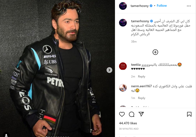 أول تعليق من تامر حسني بعد حفله في فورمولا بالمملكة السعودية