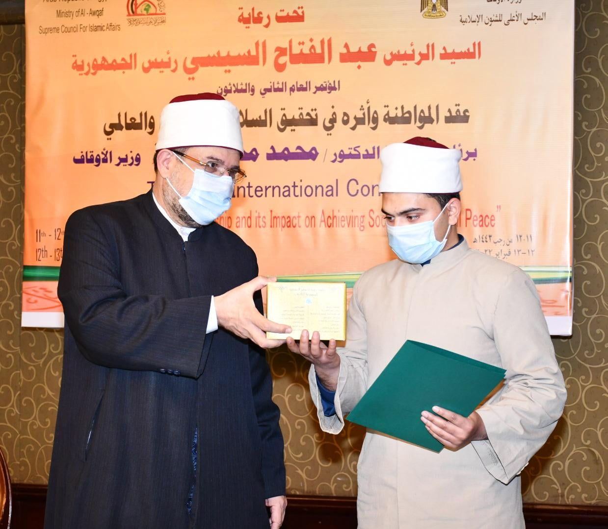 وزير الأوقاف يكرم أوائل مسابقة الكتاب والمؤلفين والمصادر العلمية