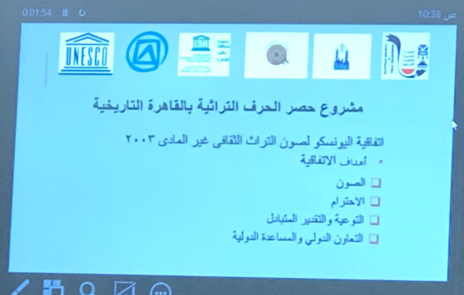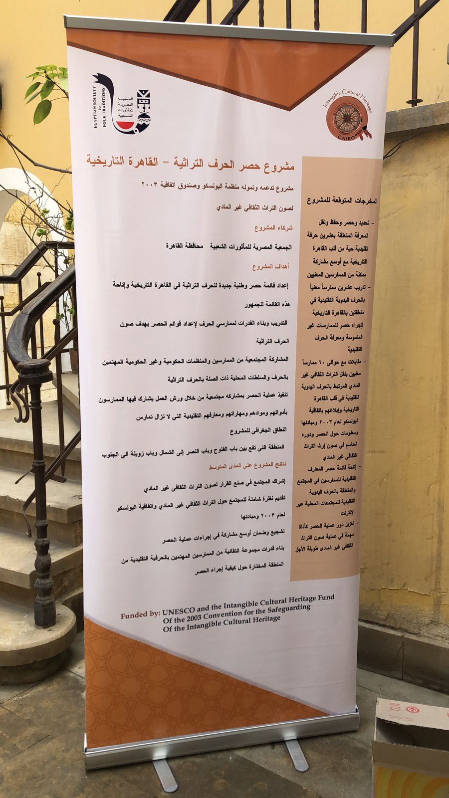 تأتي الورشة التي شارك فيه أكثر من 30 حرفي ضمن مشروع حصر الحرف التراثية بالقاهرة التاريخية والذي تدعمه وتموله منظمة اليونسكو وصندوق اتفاقية اليونسكو 2003 صون التراث الثقافي غير المادي.