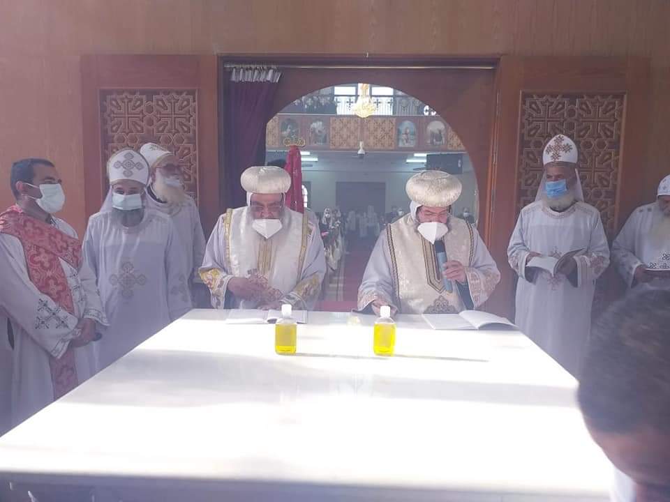 شارك أيضًا في صلوات التدشين والقداس؛ الآباء كهنة الكنيسة، وعدد من الآباء كهنة الإيبارشية، وخورس الشمامسة والشعب، ونظرًا للوضع الصحي الحالي؛ تم مراعاة تقليل أعداد الحاضرين، واتخاذ كافة الإجراءات الاحترازية.