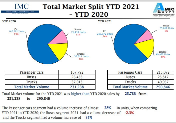 وارتفعت إجمالي مبيعات السيارات في مصر خلال العام الماضي، بنسبة وصلت إلى 25%، لتسجل 290،846 وحدة، بدلًا من 231،238 وحدة في عام 2020.