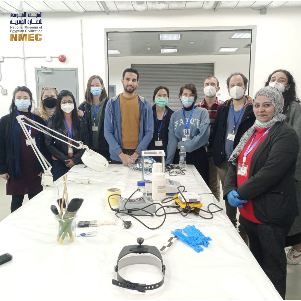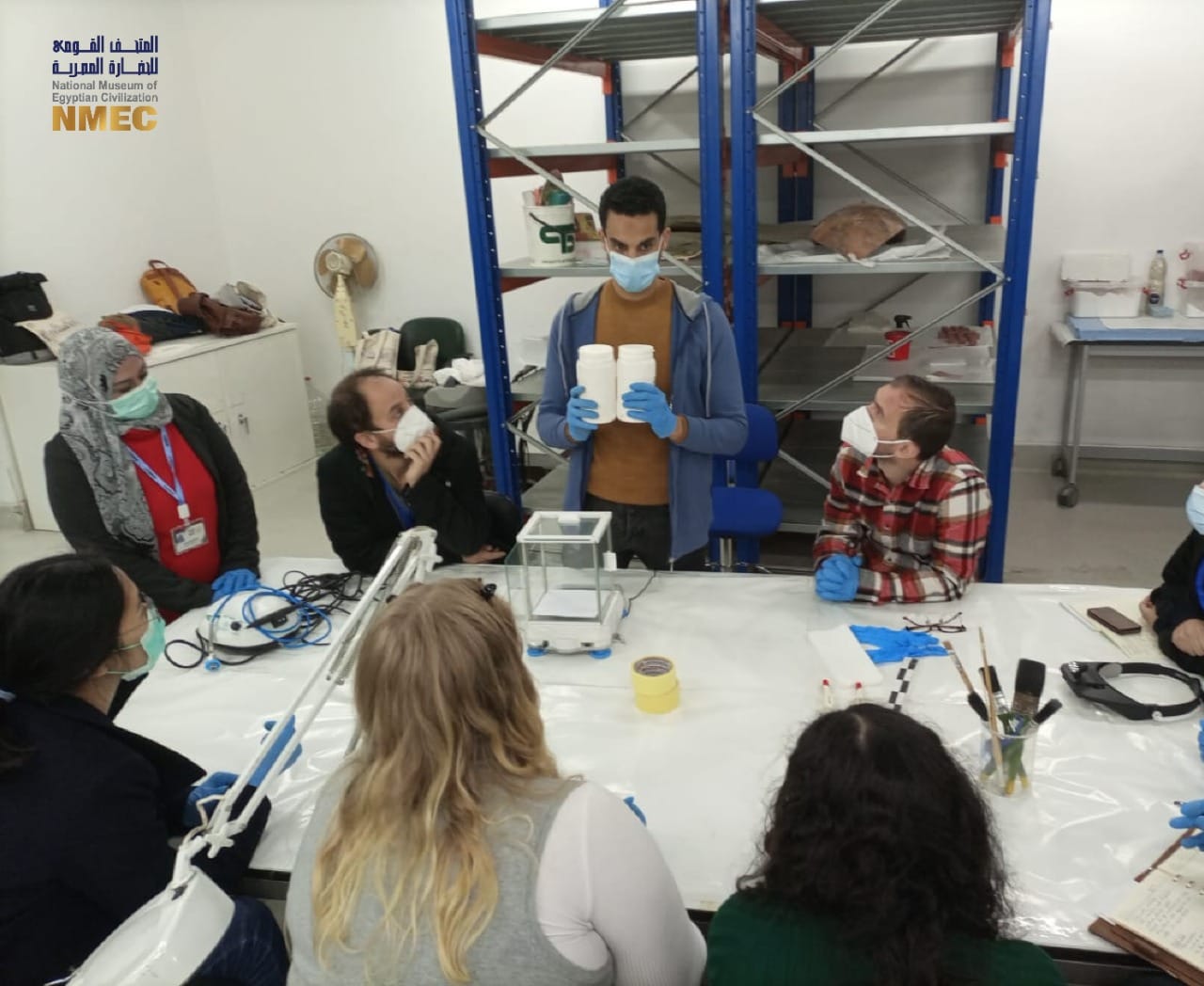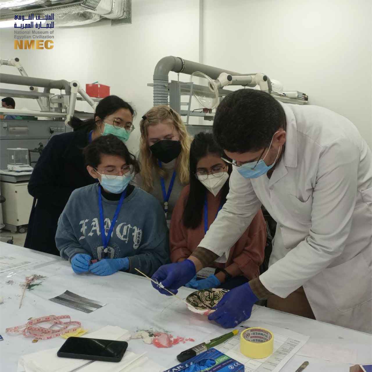 كما أجرى يحيي حسين رئيس معمل ترميم المعادن وهبة عثمان أخصائي الترميم المعادن، تدريبا للطلاب نظريًا للتعرف على أنواع المعادن الأثرية وعوامل تلفها وكيفية العلاج والصيانة، كما تم التدريب العملي على طرق فحص المعادن وتوثيقها فضلا عن العلاج والصيانة وإزالة نواتج الصدأ المختلفة.