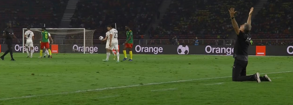 ويأتي ذلك، بعد احتساب الحكم الجامبي بكاري جاساما، ركلة حرة على منتخب مصر أمام منطقة الجزاء، والتي أدت إلى خطورة كبيرة على مرمى محمد أبو جبل.