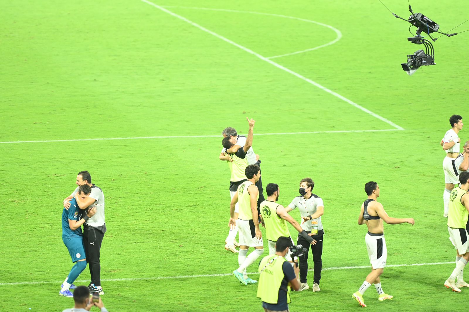 وسيطرت حالة من الفرحة العارمة على لاعبي منتخب مصر وأعضاء الجهازين الفني والإداري، بعد انتهاء ماراثون ركلات الترجيح بفوز منتخب مصر، ليتأهل الفراعنة إلى الدور النهائي لبطولة كأس أمم إفريقيا.