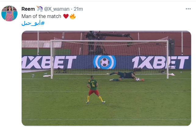 وغردت ريم على صورة أثناء تصدي أبو جبل، قائلة: رجل المباراة، بينما نشر حساب آخر مجموعة من الصور لأب جبل، معلقًا: الأفضل، مستخدمًا إيموجي القلوب.