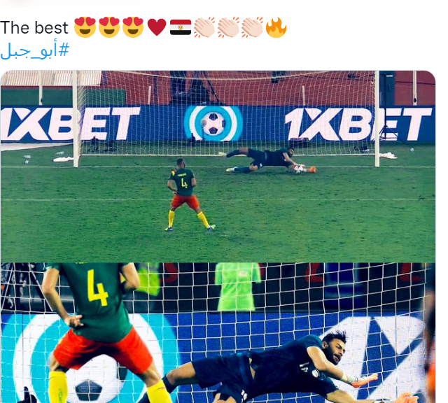 تصدر اسم حارس مرمى نادي الزمالك، محمد أبو جبل، تريند موقع التدوينات الصغيرة تويتر، بعد دقائق قليلة من فوز مصر على الكاميرون، خلال نصف النهائي من كأس الأمم الإفريقية، المُقامة على أرض الكاميرون، وذلك بعد أن خاض المنتخب المصري مباراة شاقة ضد خصمه، انتصار خلال عن طريق ضرابات الجزاء.