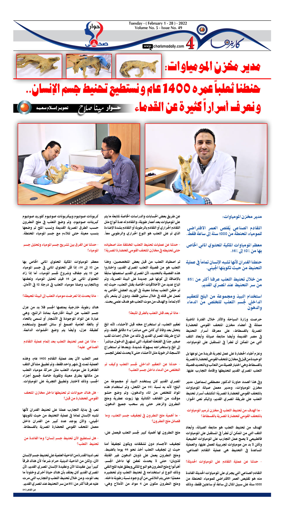 صحيفة تصدر في أمريكا تنشر حوار القاهرة 24 مع مدير مخزن المومياوات