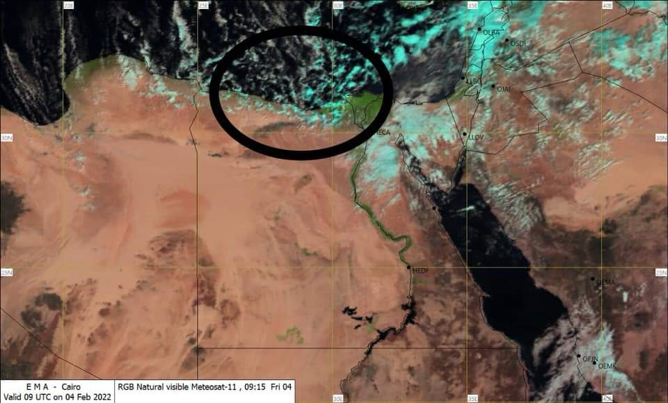 ورصدت الأقمار الصناعية التابعة لهيئة الأرصاد المصرية تدفق السحب الرعدية على مدن الإسكندرية وسيدى عبد الرحمن والعلمين، في السواحل الغربية للبلاد، صاحبها سقوط أمطار متوسطة إلى غزيرة على بعض تلك المناطق منذ ساعات.