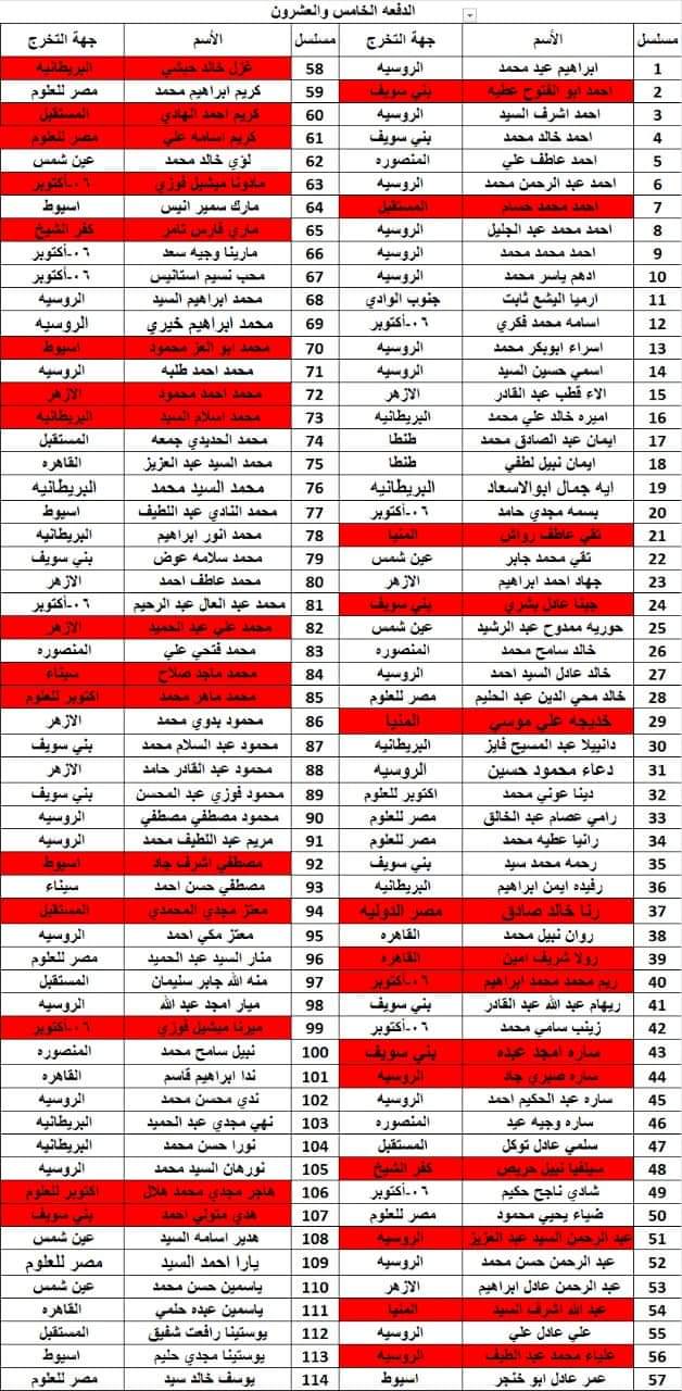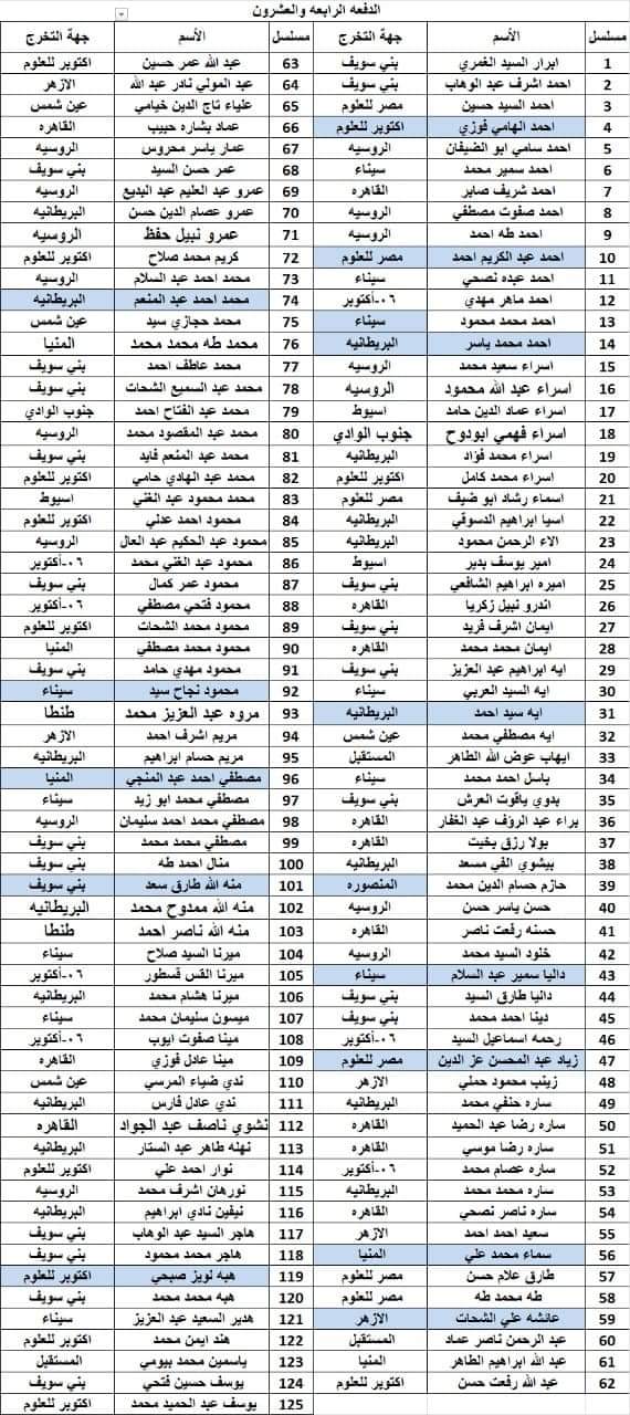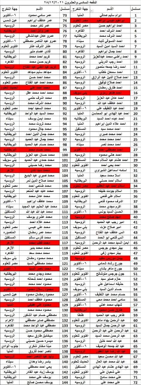 وذكرت النقابة العامة لأطباء الأسنان أن الأسماء المظللة باللون الأحمر أو الأزرق لم تأتي من وزارة الصحة والسكان.