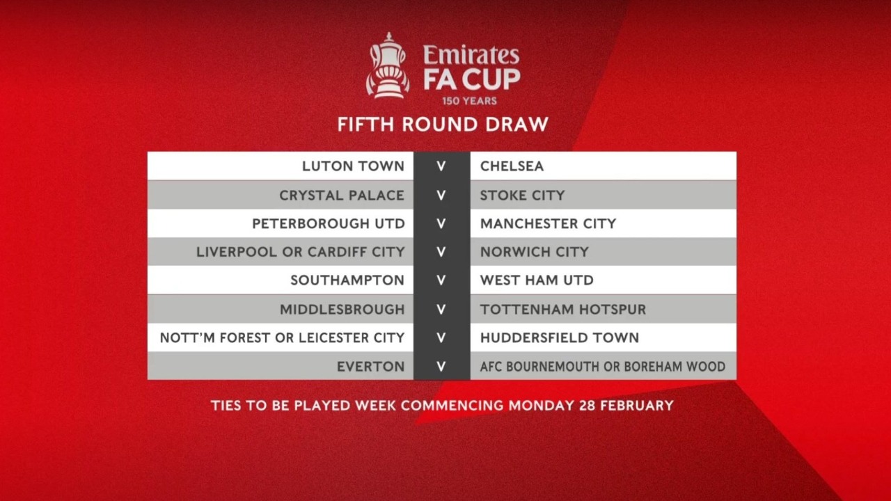 وجاءت قرعة دور الــ16 من مسابقة كأس الاتحاد الإنجليزي كالتالي: