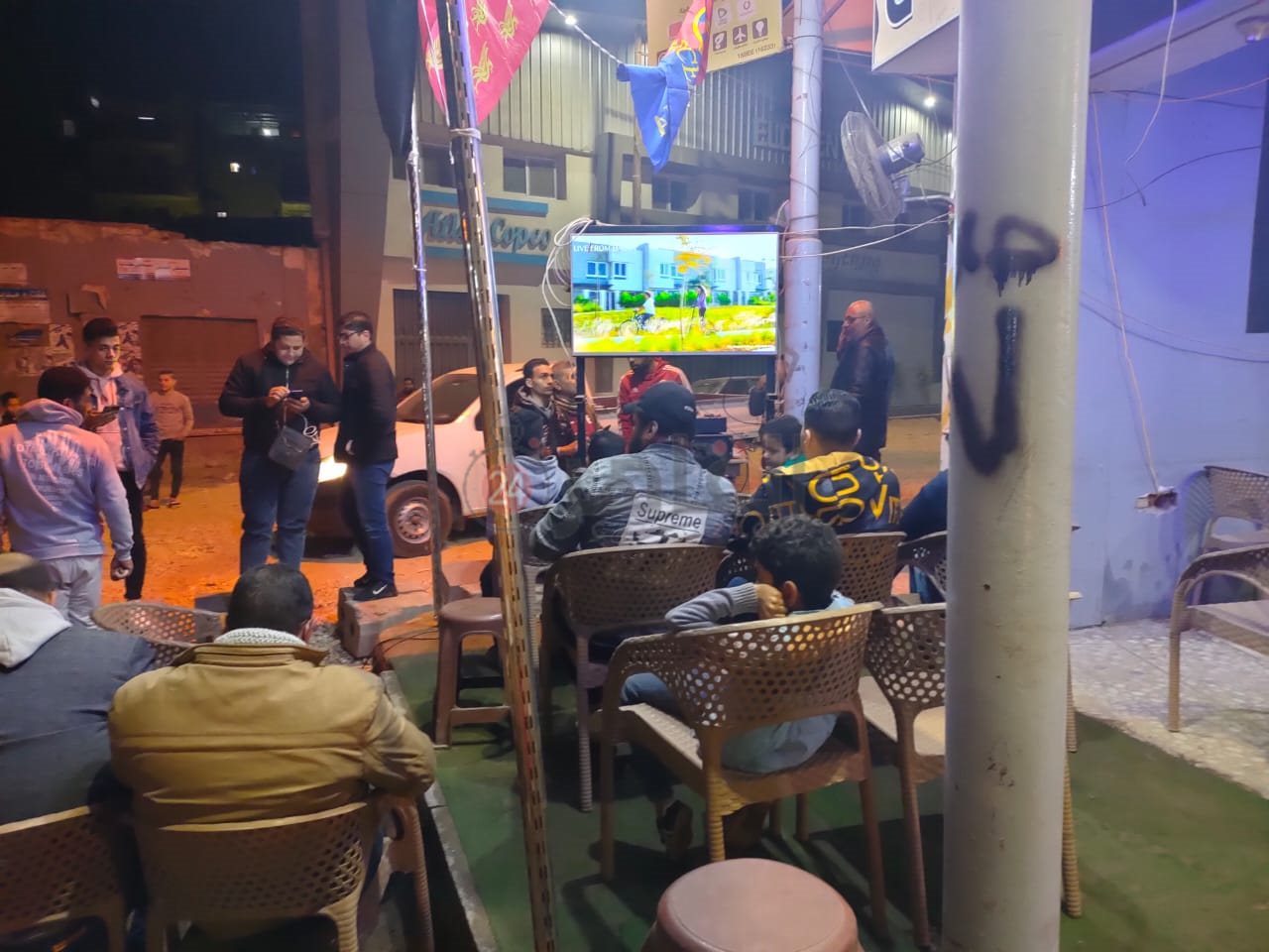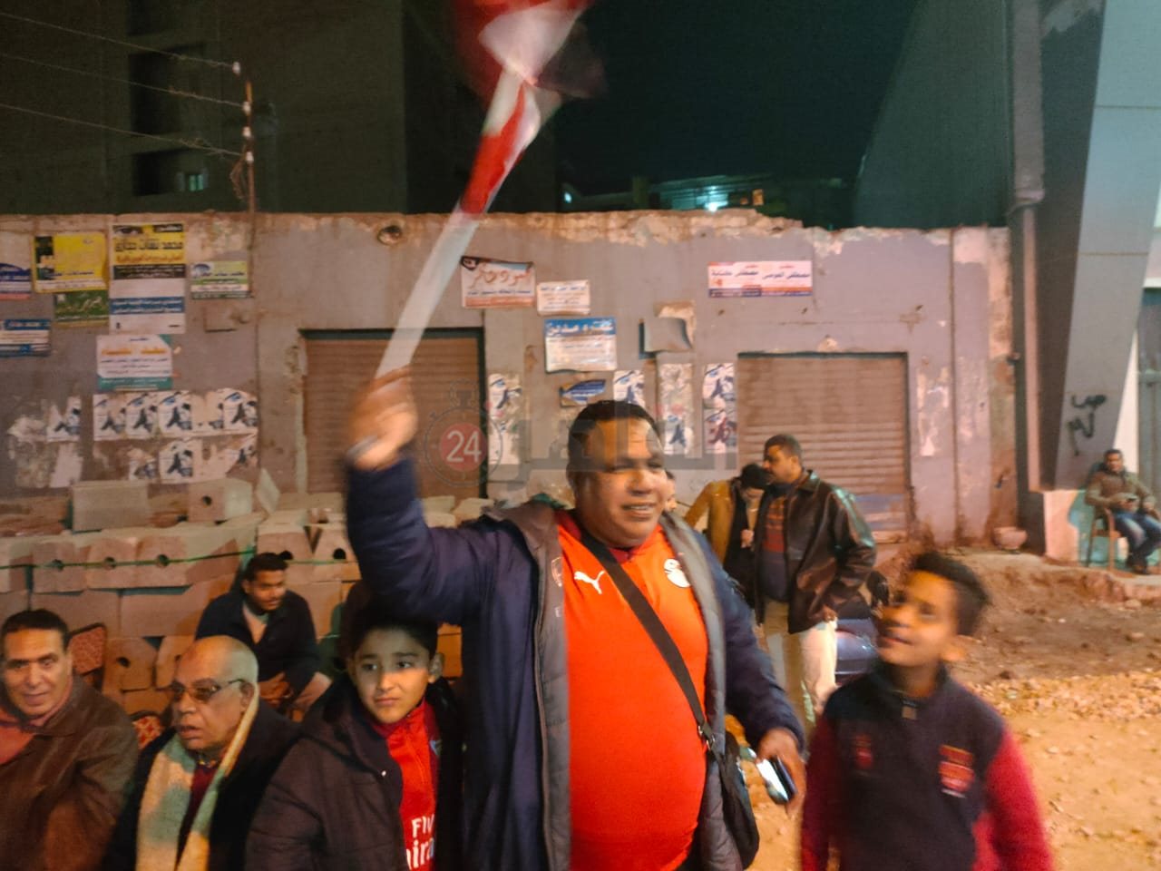 هتافات وشاشات عرض وزحام المواطنين أمام منزل محمد النني بالمحلة.. ووالده يوزع الأعلام تشجيعا للمنتخب