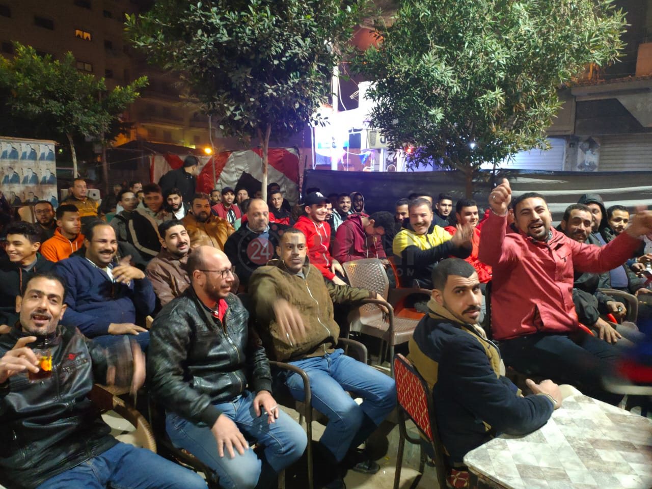 واصطحب الأهالي أبناءهم الصغار لتشجيع ابن بلدهم اللاعب محمد النني، وحرص الكثيرون من الشباب والفتيات والكبار على الوجود قبل المباراة وتشجيع المنتخب.