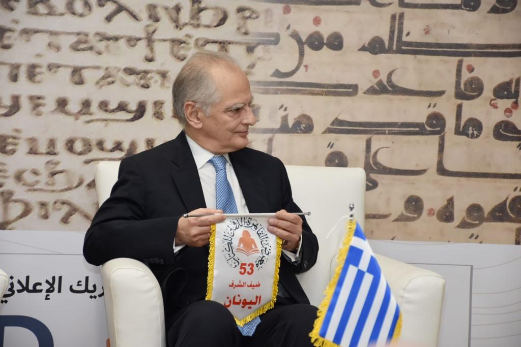 من جانبه وجه سفير اليونان الشكر للدولة المصرية على هذه الاستضافة الكريمة واختيار بلاده كضيف شرف الدورة 53 من معرض القاهرة الدولي للكتاب، معربًا عن سعادته بالنجاح المتفرد الذي شهدته هذه الدورة على كافة الأصعدة، وابدى انبهار اليونانيين بدقة التنظيم وتنوع الفعاليات والثراء الذي اتسمت به هذه الدورة، وبالمنصة الالكترونية التي اتاحت للملايين من تفقد المعرض وفعالياته اون لاين، مثمنًا كافة أنواع التعاون المثمر والبناء مع المصريين ومردودها الهادف لتوطيد العلاقات بين البلدين.