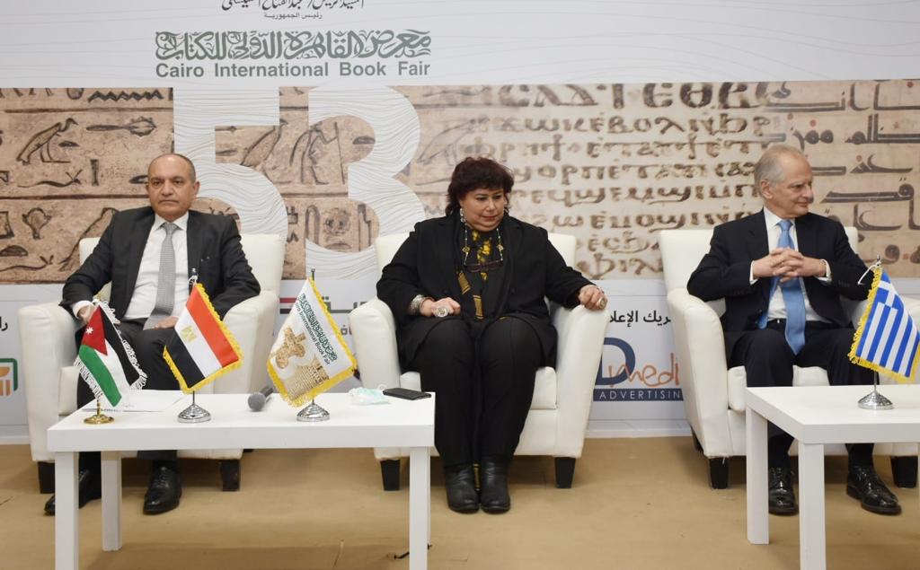 شهدت الفنانة الدكتورة إيناس عبد الدايم وزيرة الثقافة حفل هراسم تسليم لقب ضيف الشرف للدورة القادمة من معرض القاهرة الدولى للكتاب حيث سلم السفير نيكولاوس جاريليديس سفير دولة اليونان بالقاهرة ( ضيف شرف الدورة 53 للمعرض ) راية ضيف الشرف للسفير أمجد العضايلة سفير المملكة الأردنية (ضيف شدف الدورة 54 للمعرض) وذلك بحضور الدكتور هيثم الحاج رئيس الهيئة المصرية العامة للكتاب ونائبه الدكتور أحمد بهي الدين وحشد جماهيري واعلامي كبير.