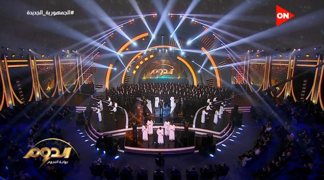 واختتم متسابقي برنامج الدوم الحلقة بأغنية ياللي بدعتوا الفنون، مع عرض استعراضي في تناغم جميل كأنها لوحها، وتغنوا قائلين: ياللي بدعتوا الفنون وفي إيدكو أسرارها.. والفن دنيا جميلة وانتو أنوارها.
