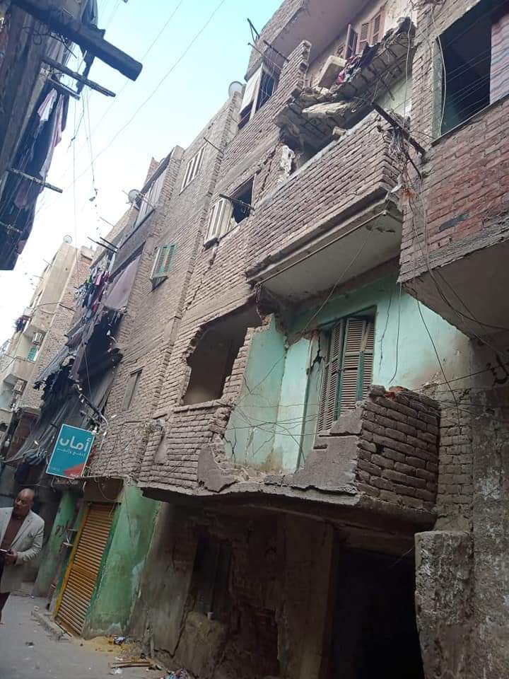 وتكشف الصور المرفقة شكل العقار بعد سقوط البلكونة الخارجية من العقار، وشكل العقار المتهالك، وتصدع الحوائط مما جعل قرار الإزالة هو القرار المطروح.