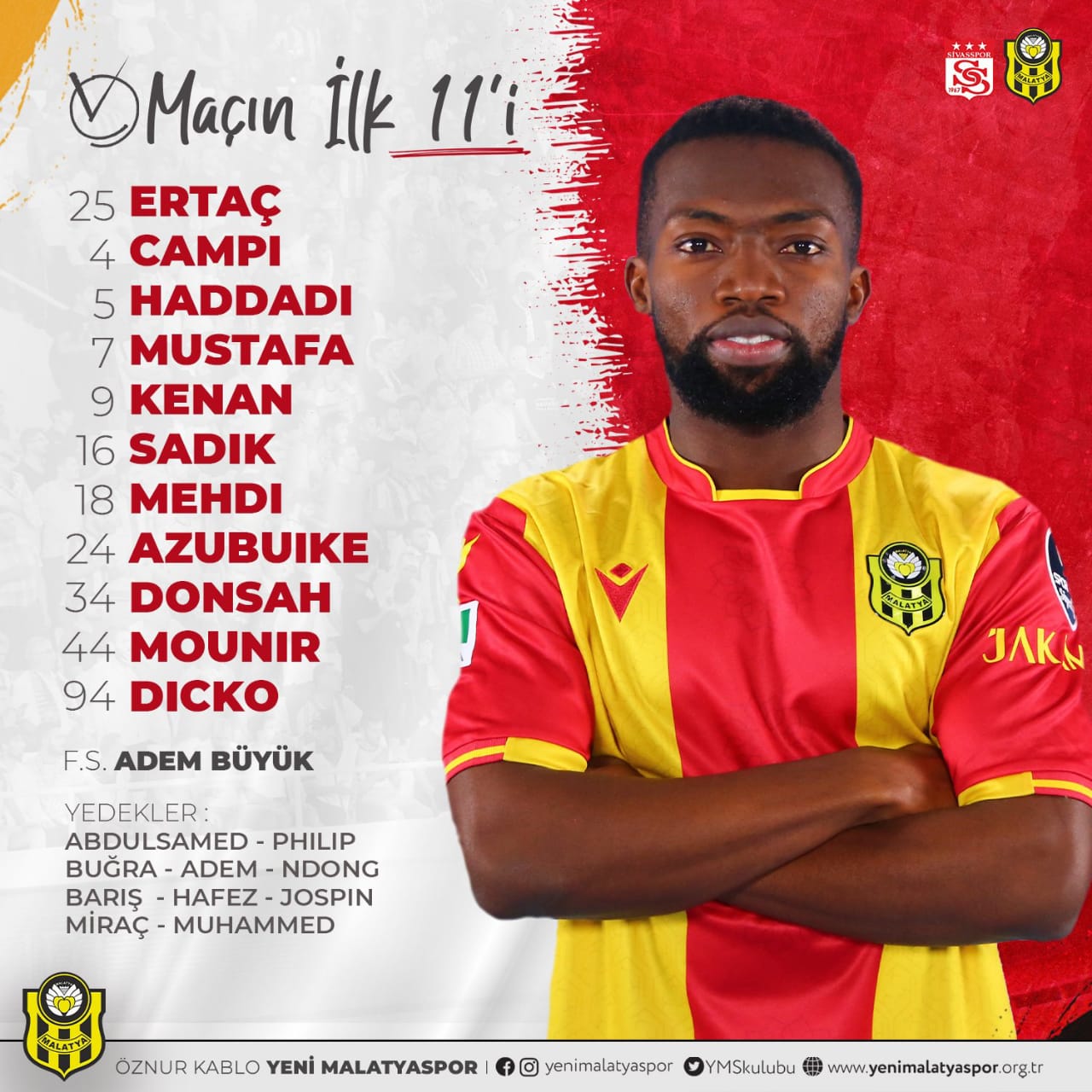 وشهد تشكيل مالاتيا سبور تواجد الدولي المصري كريم حافظ على مقاعد البدلاء أمام نظيره سيفا سبور.