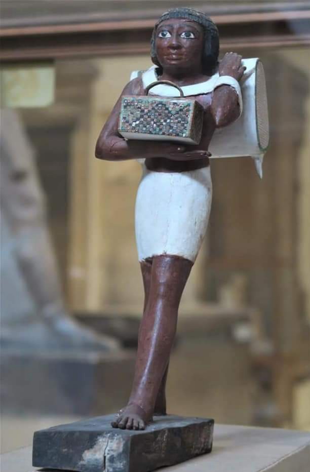 أعلن متحف بورسعيد القومي للآثار، عرض قطعة أثرية فريدة من نوعها، اكتشفت في مير بالقرب من مركز القوصية، محافظة أسيوط وهو تمثال خشبي على ظهره شنطة.