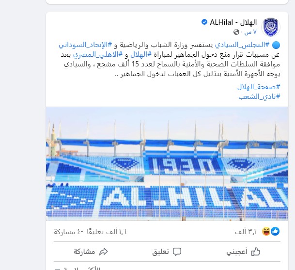في ذات السياق، قال رامي كمال عضو لجنة التطبيع بنادي الهلال السوداني، إن النادي تواصل مع المجلس السيادي الانتقالي السوداني، مؤكدًا أن المجلس منحهم الضوء الأخضر لحضور الجماهير.