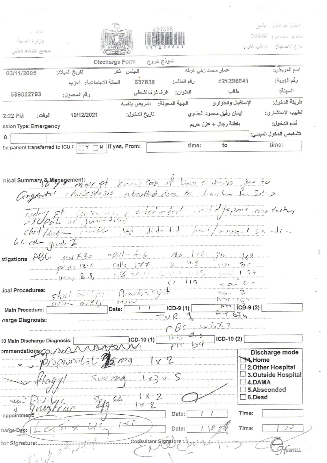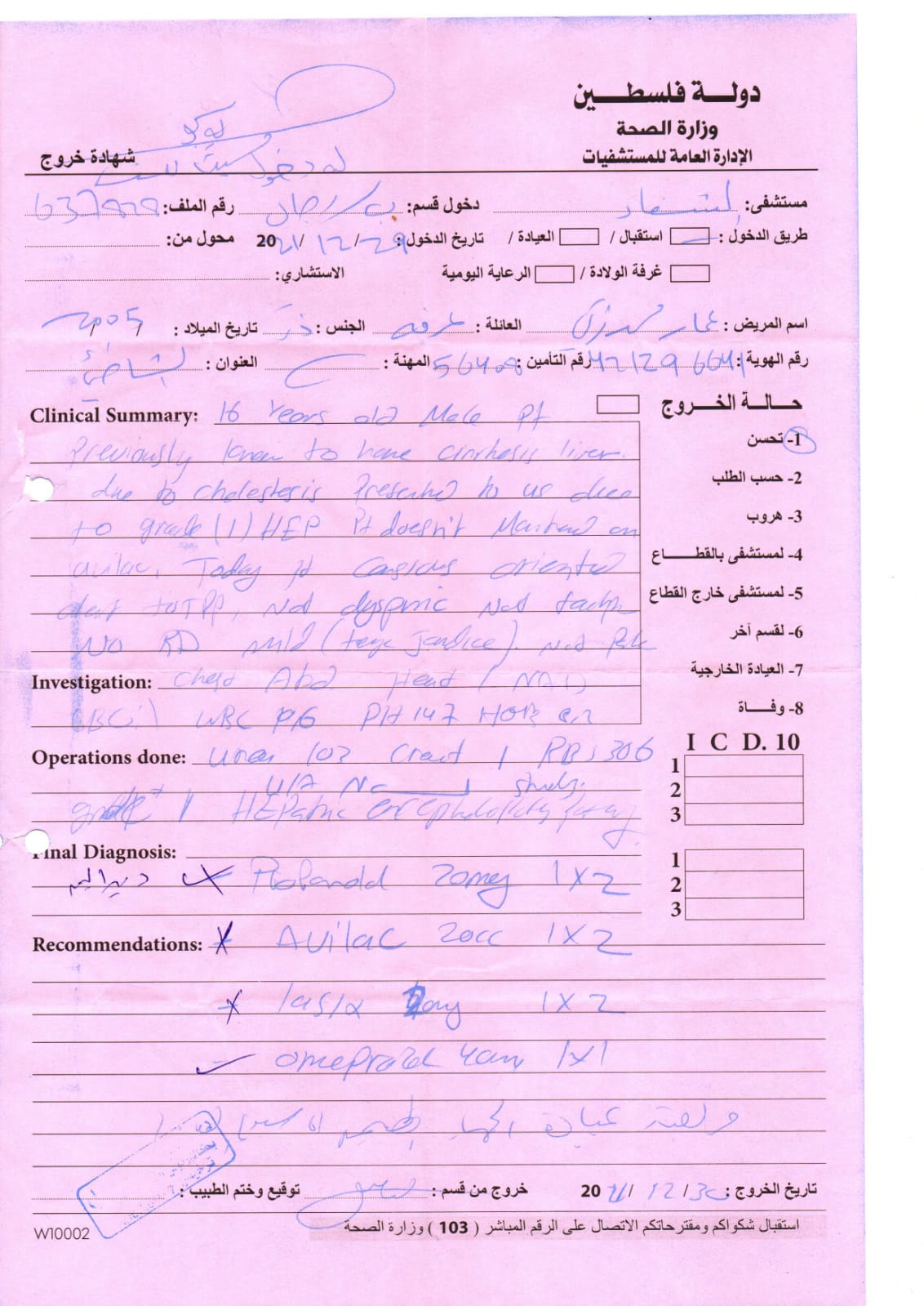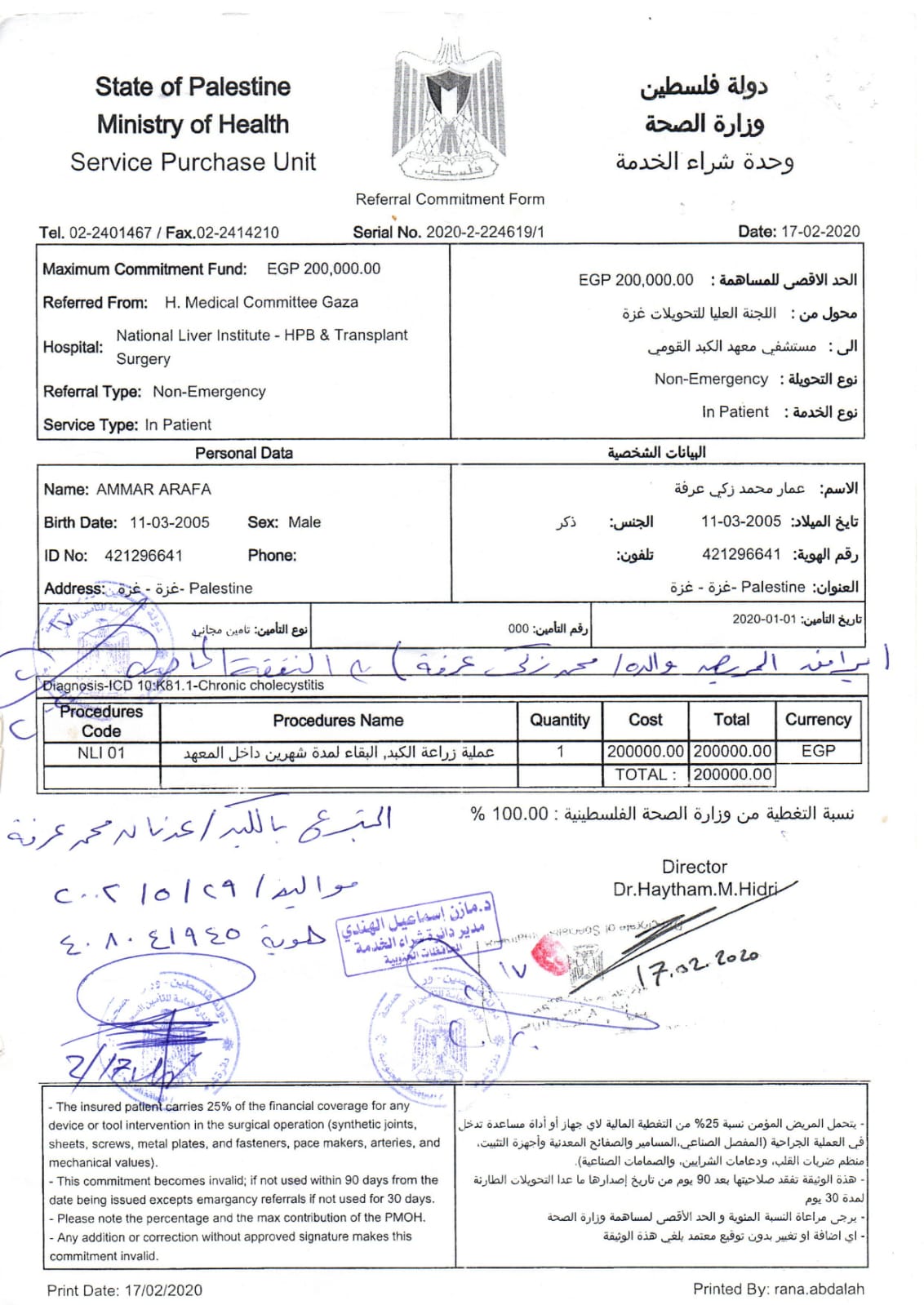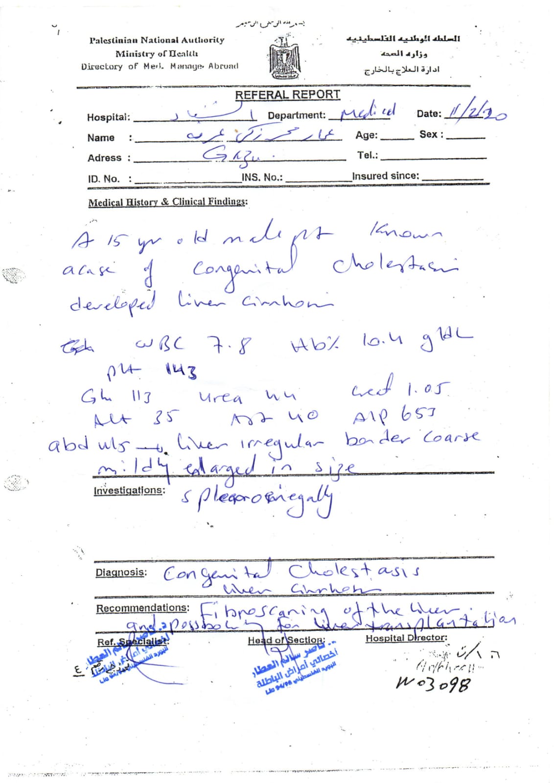 وتابع: حصلنا على تحويل إلى مستشفى معهد الكبد القومي التقدمي بمصر الشقيقة بالمنوفية، والآن نقوم بإجراءات السفر لبلدنا الأخرى مصر، ولكننا ننتظر رد السفارة الفلسطينية لمصر، لتوفير إسعاف من العريش حتى القاهرة، وصولا للمنوفية.