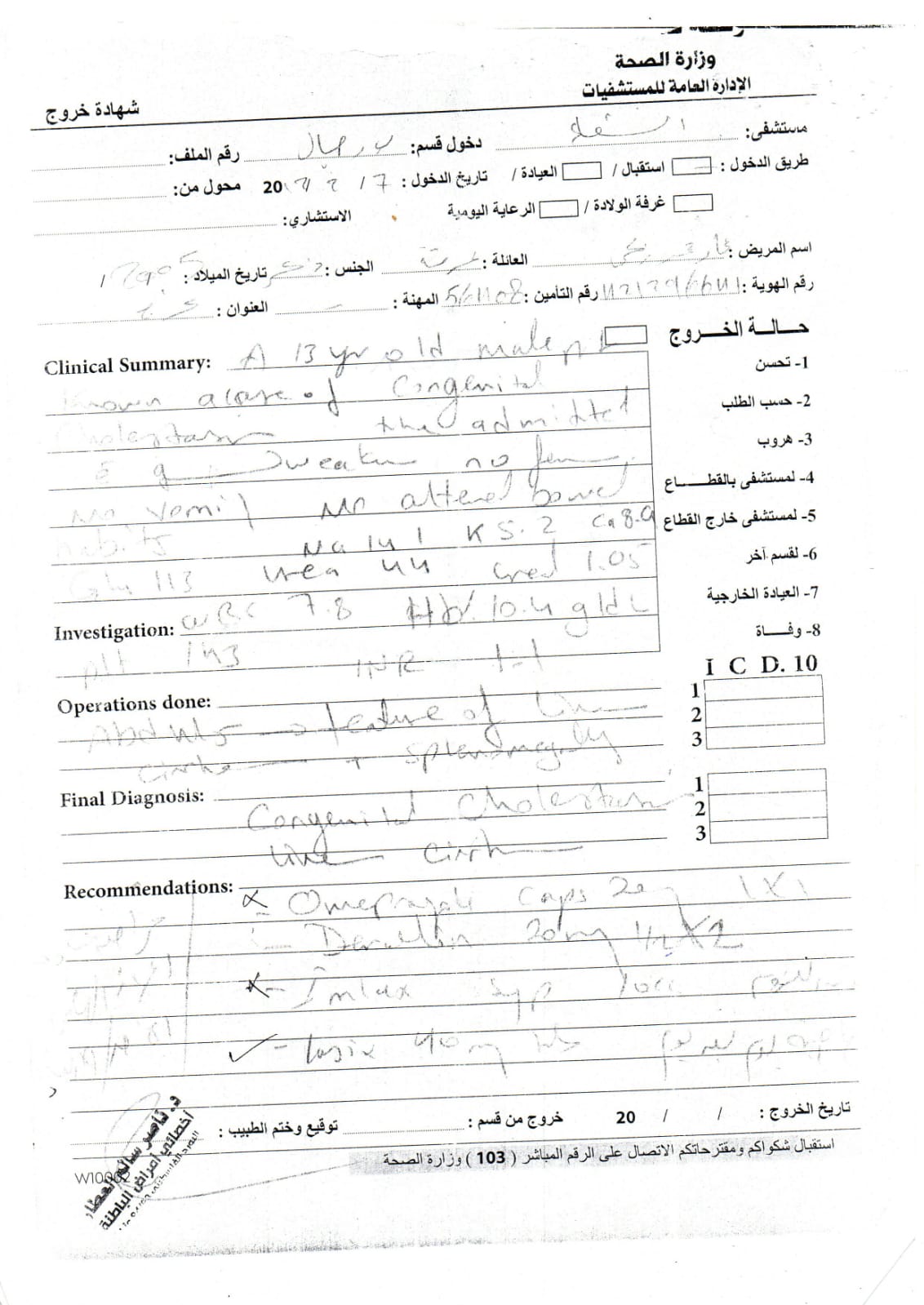 وتابع: لو الرئيس عبد الفتاح السيسي، ووزارة الصحة المصرية علمت بحالة طفلنا عمار، من الممكن مساعدتنا وخدمتنا في إنقاذ حياة طفلنا عمار من خلال زراعة الكبد له، عن طريق بنك الأعضاء الموجود بمصر حسب ما علمنا من الجهات المعنية.