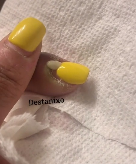 كشف الفيديو عن يد والدتها، وقد تم طلاؤها بلون أظافر أصفر فاتح، ويظهر خروج سائل أبيض لزج من الظفر، الذي بدا أحمر وملتهبًا، كما بدا الجلد المحيط بالحواف جافًا أيضًا.