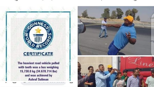 حقق ابن محافظة الإسماعيلية، المصارع أشرف كابونجا، لقب أقوى رجل في العالم من موسوعة “جينيس” للأرقام القياسية، وذلك بعد كسره الرقم القياسي الهندي لسحب الشاحنات العملاقة، وسحبه شاحنة تزن 15 طنًّا بأسنانه، وذلك يعد أكبر من الرقم الذى حققه أحد الهنود وقام بسحب شاحنة بوزن 13 طنًّا.